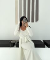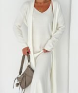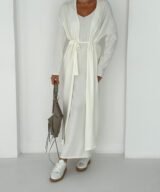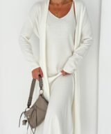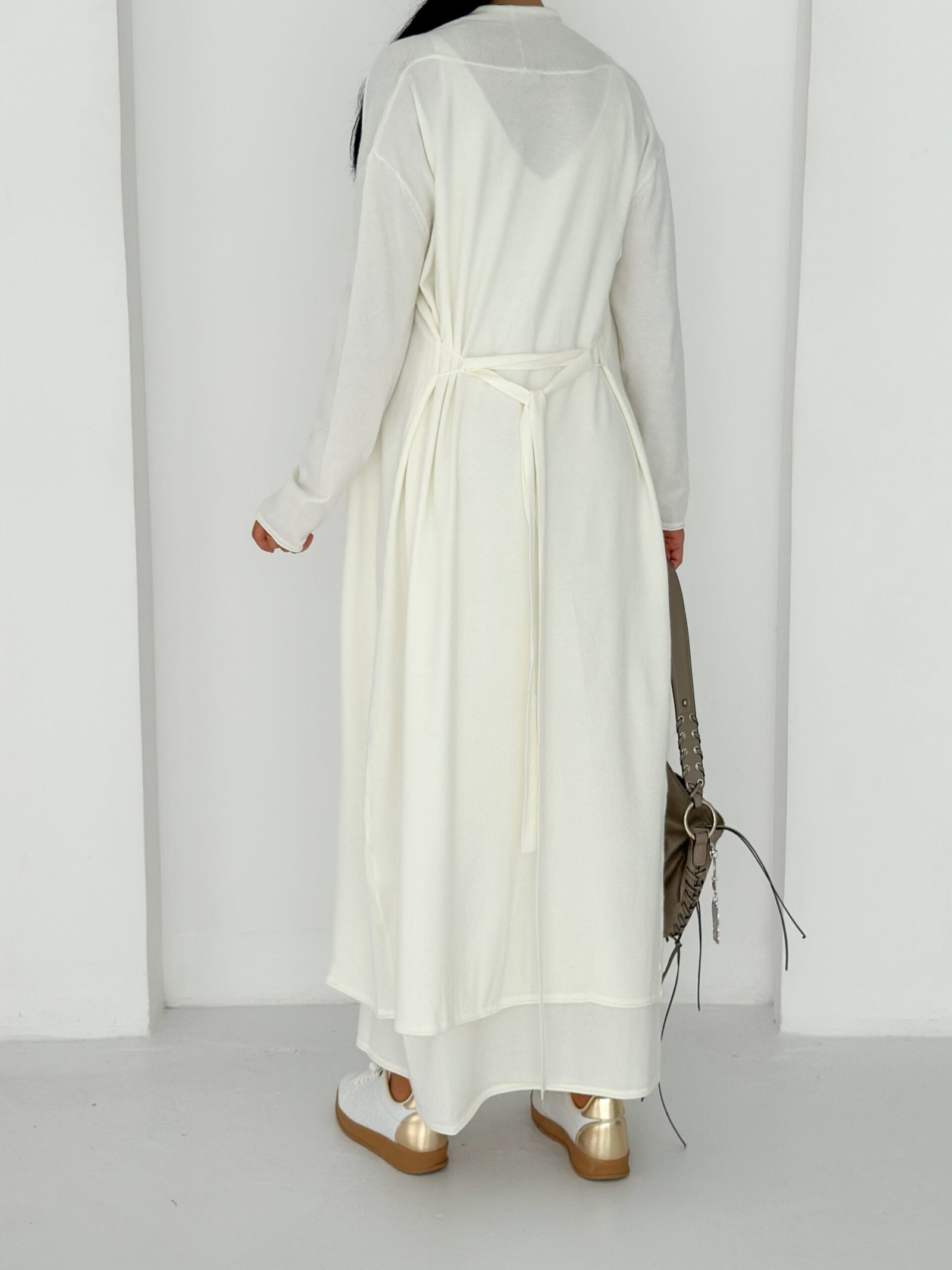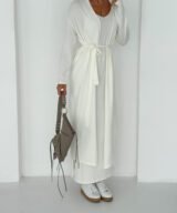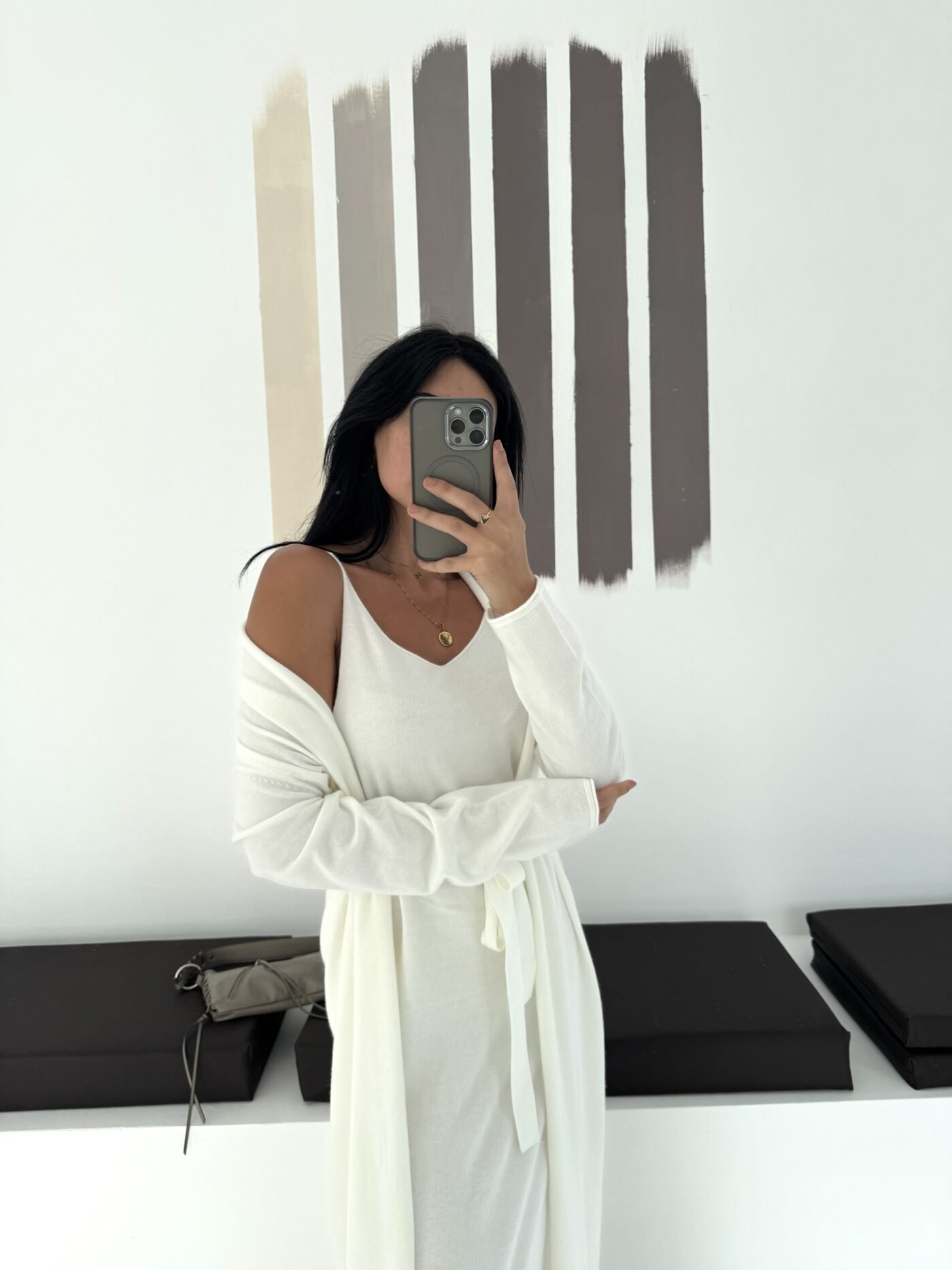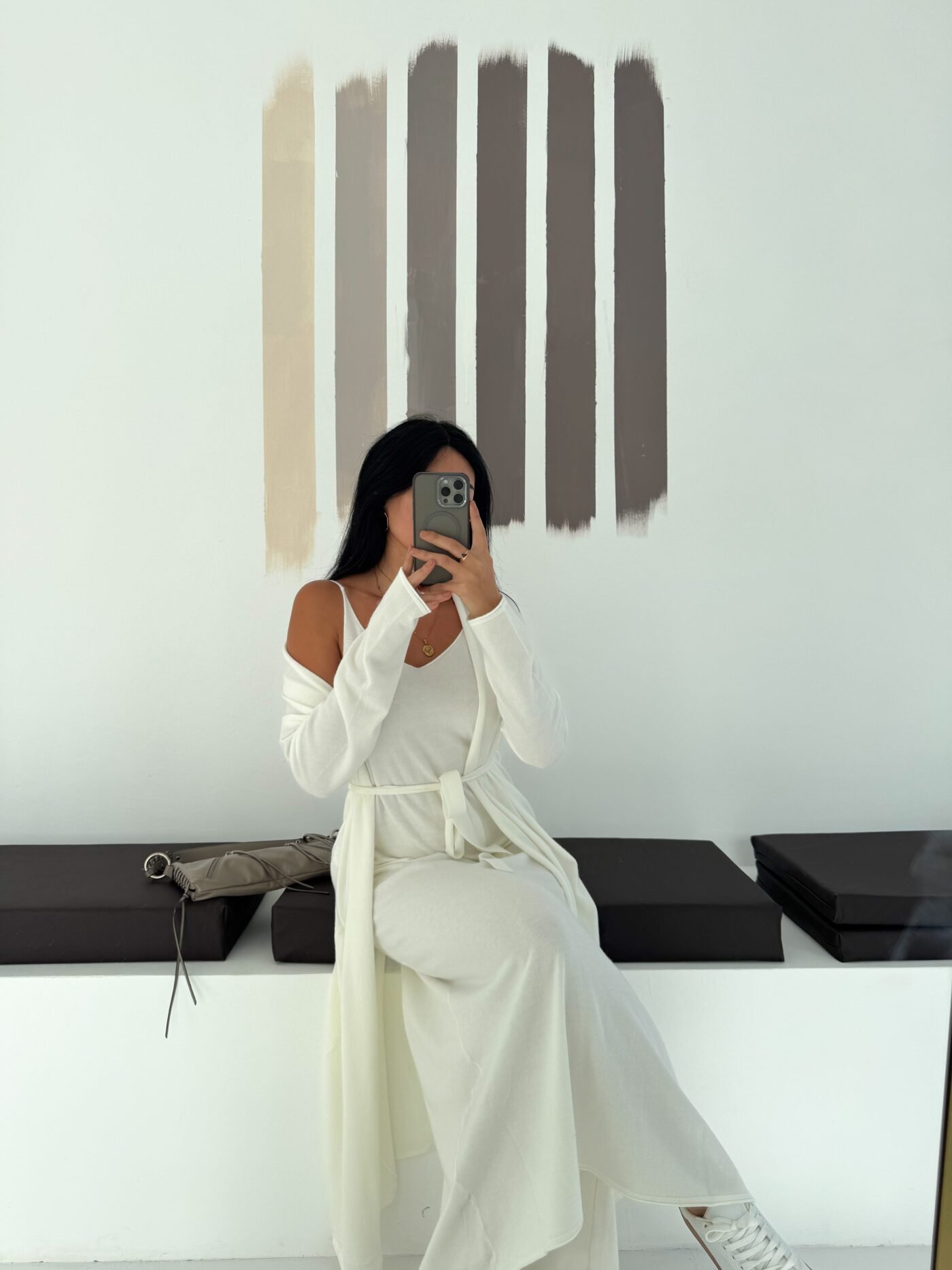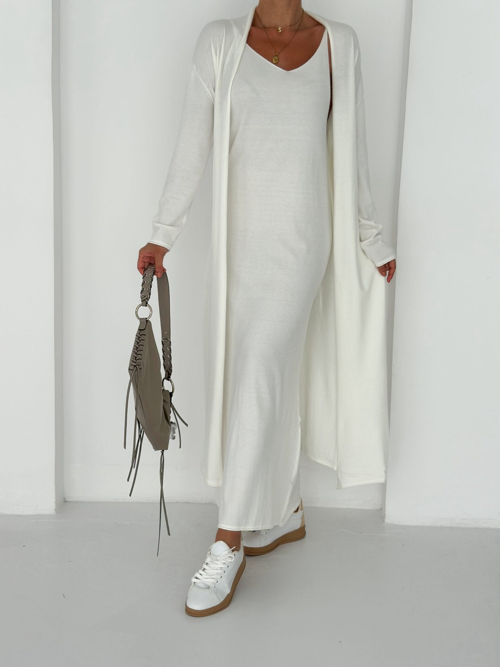 A soft, elegant lounge set designed for everyday luxury. Crafted from a premium lightweight knit with a subtle touch of cashmere for extra softness and comfort. The set includes a sleeveless maxi dress and a long belted cardigan for effortless layering and timeless style. Perfect for travel days, coffee runs, relaxed gatherings, or elevated home wear.