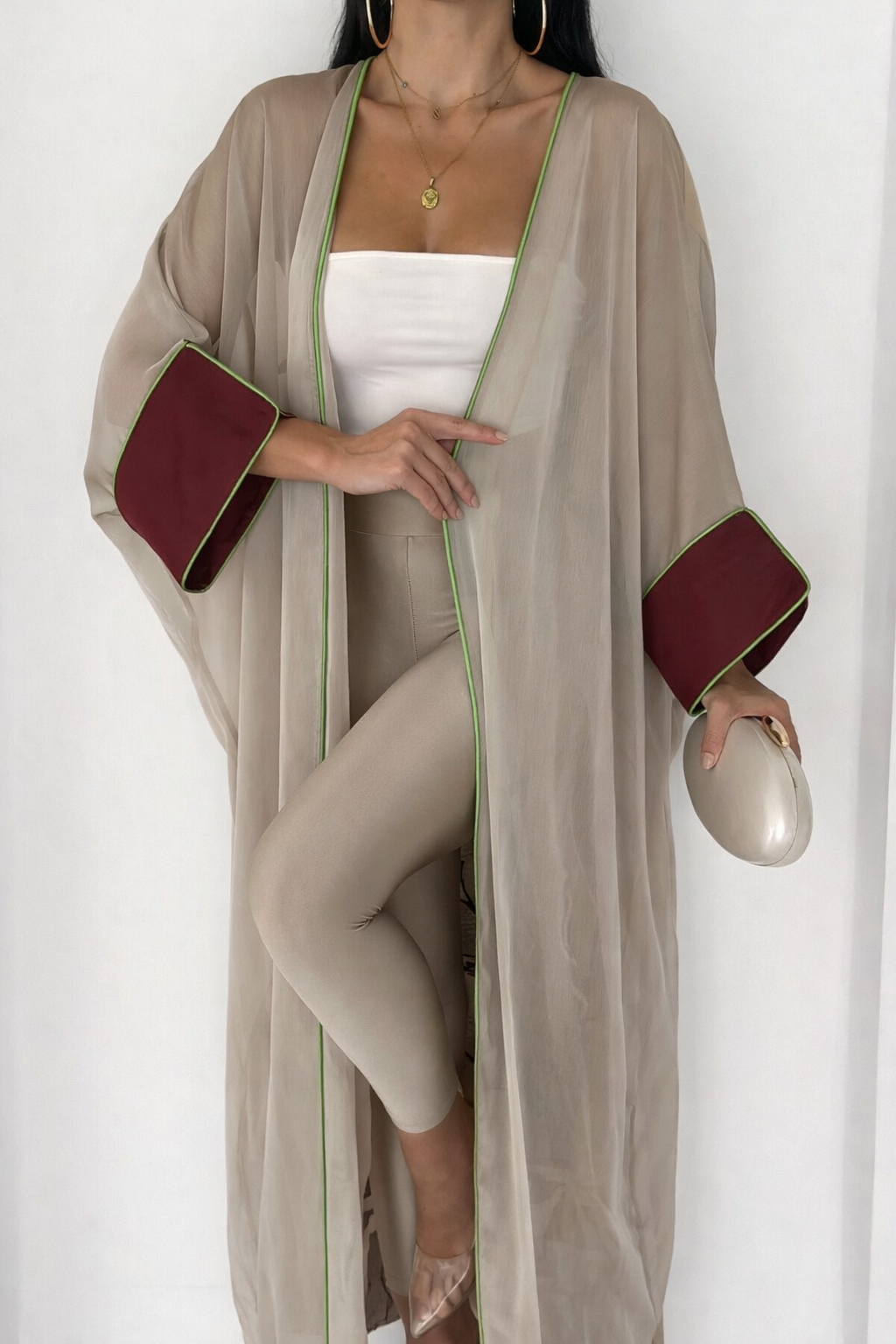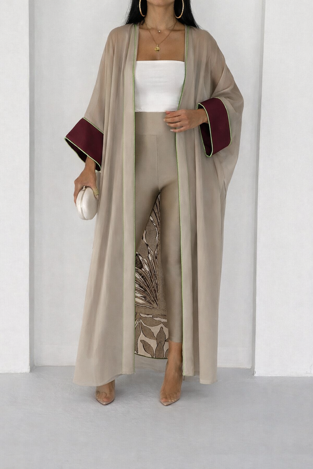 Flowy, airy, and easy to layer — perfect for Ramadan gatherings, Eid celebrations, or elevated daytime styling. Wear it open for a modern look or layer it over neutral tones for a refined finish.