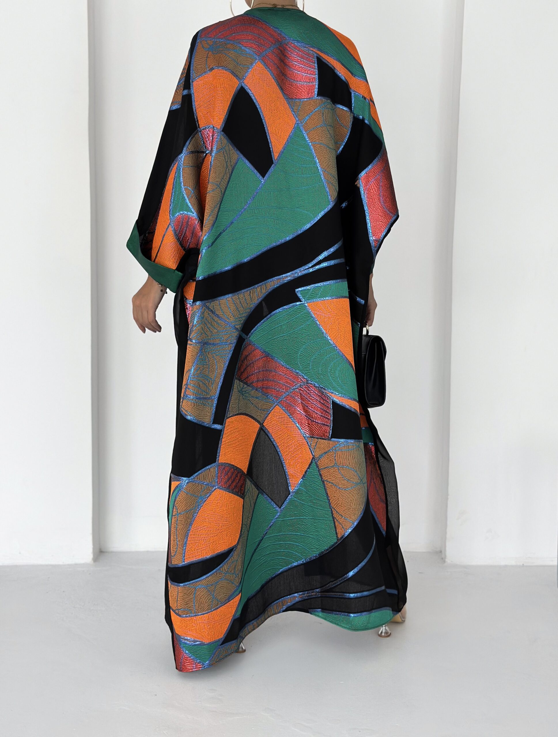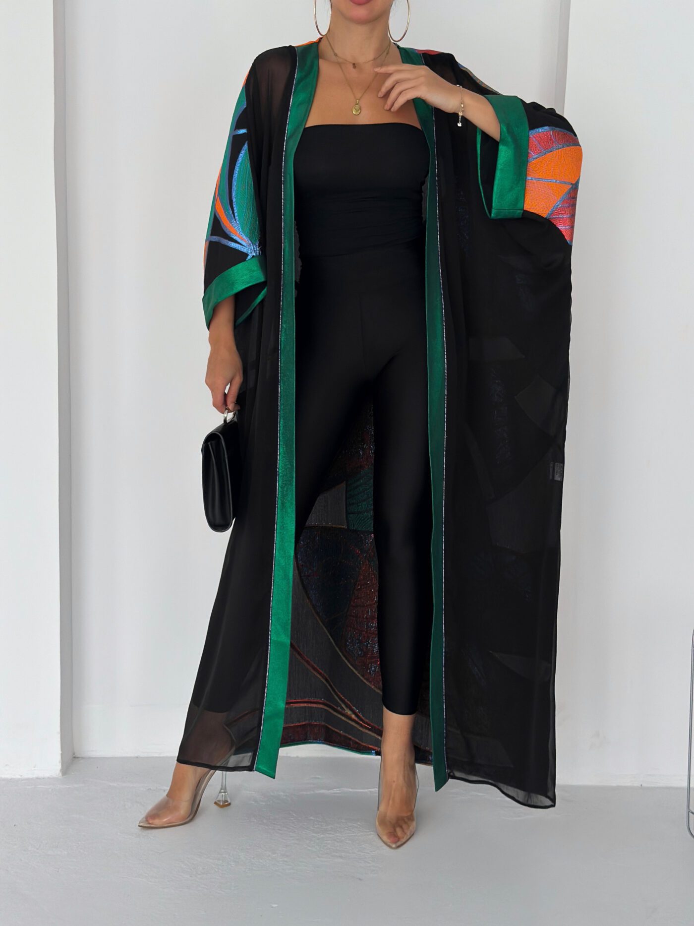 A bold and artistic sheer abaya designed to make a statement.