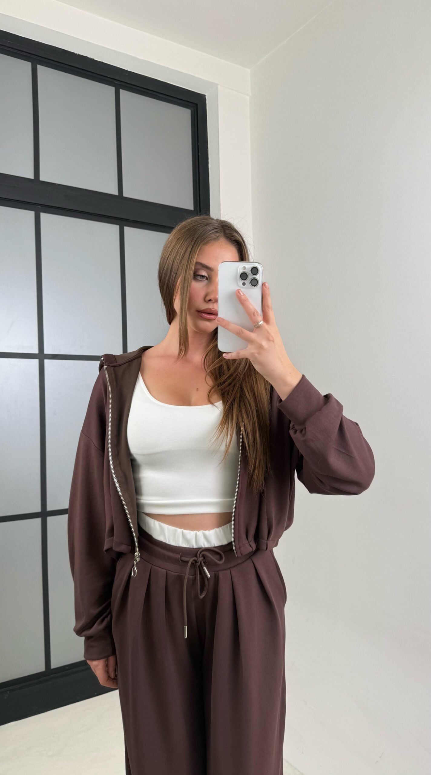 The Urban Ease Set is designed for effortless everyday style with a modern edge. This 3-piece set includes a cropped zip hoodie, a soft inner top, and relaxed wide-leg pants. Made from ultra-soft cotton fabric that feels gentle and comfortable on the skin, perfect for all-day wear.