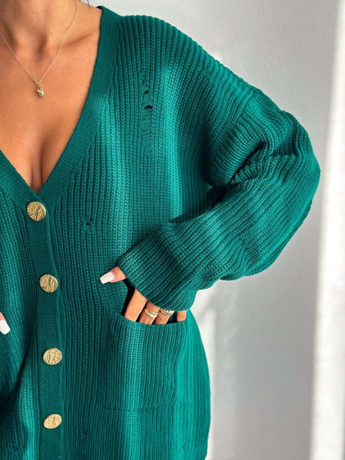 Elevate your style with our Knitted Detailed Knitwear Cardigan in rich dark green. This cardigan boasts intricate knitted details and a cozy, textured feel. Perfect for adding warmth and a touch of sophistication to your fall and winter wardrobe.