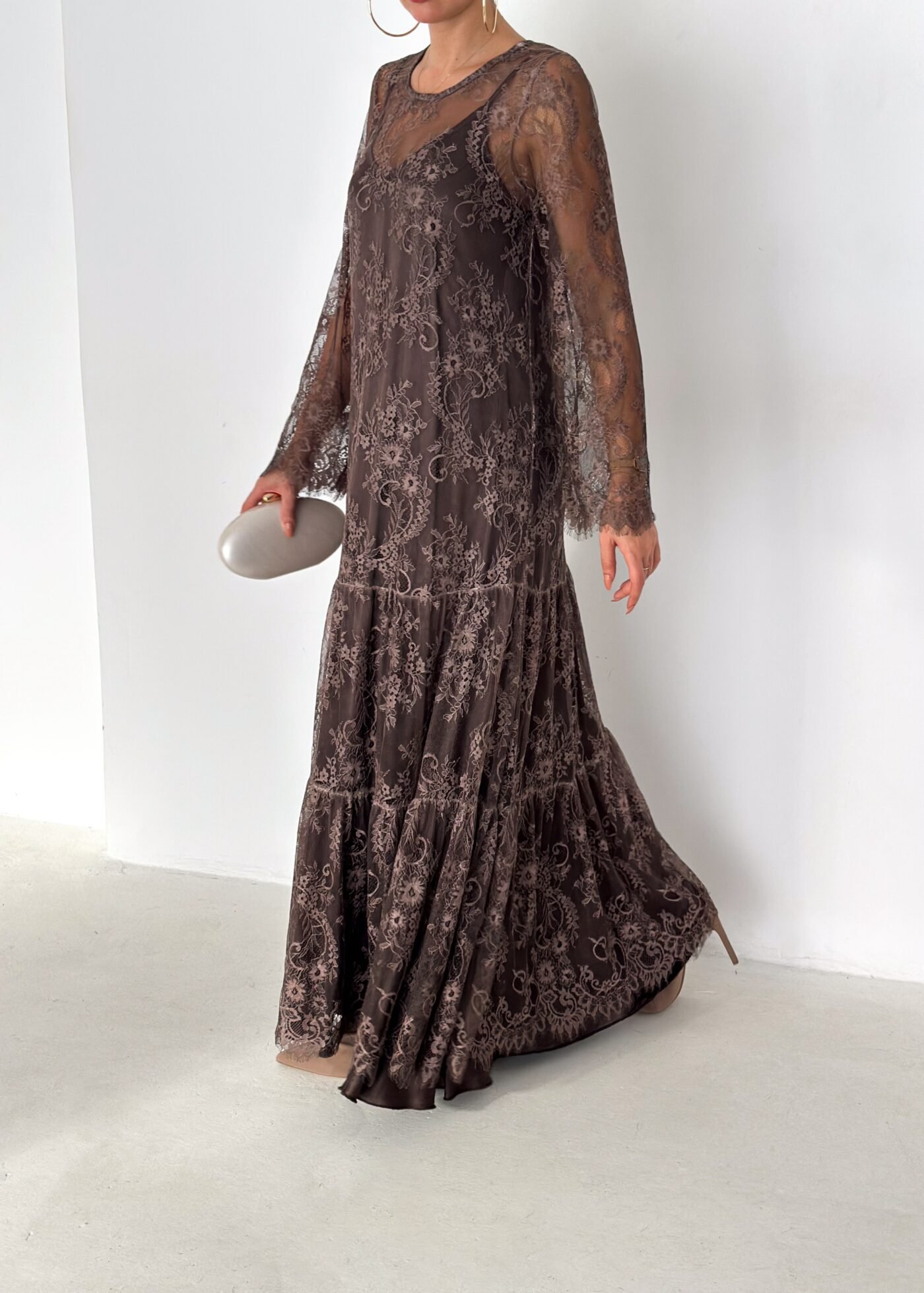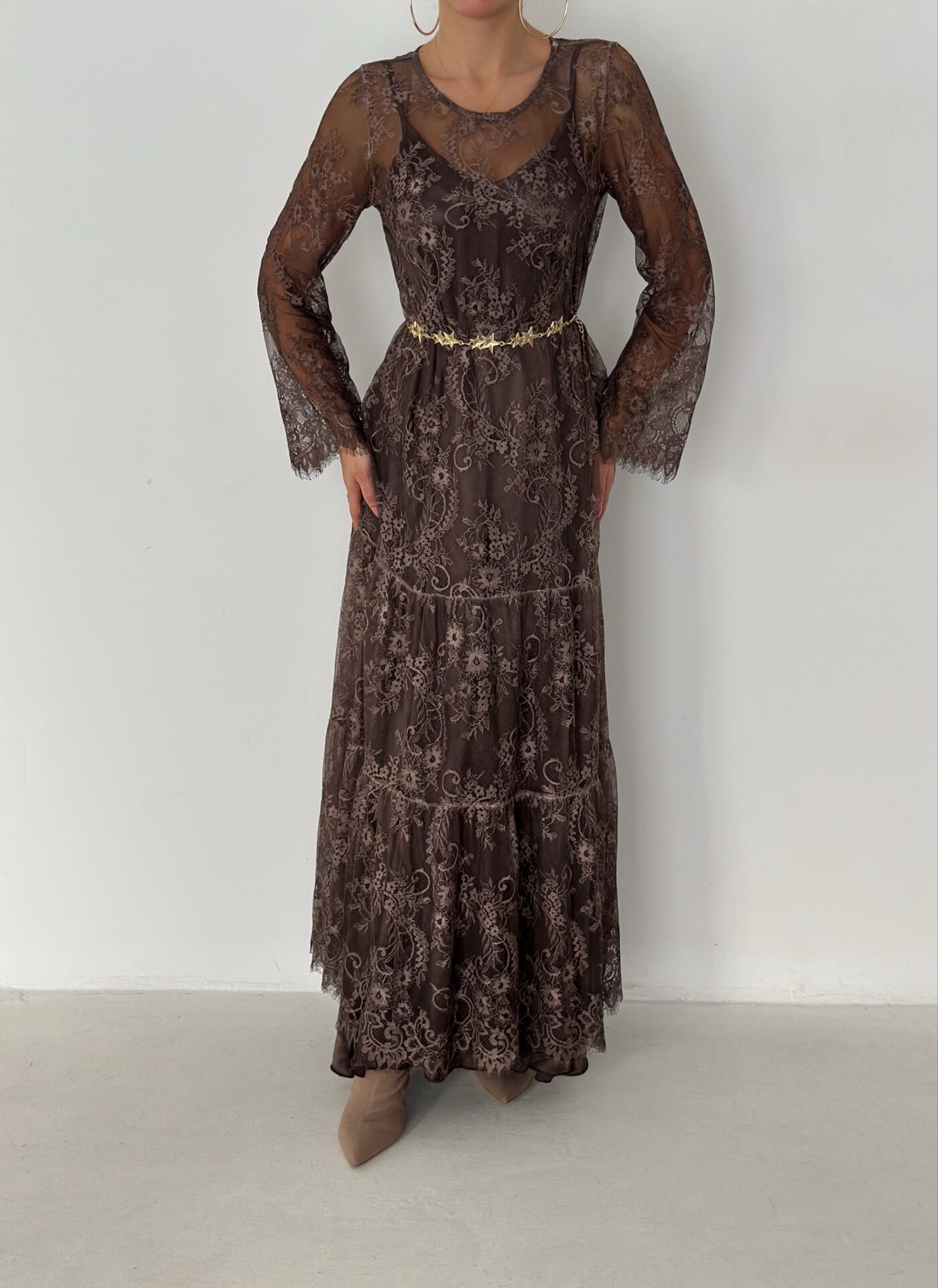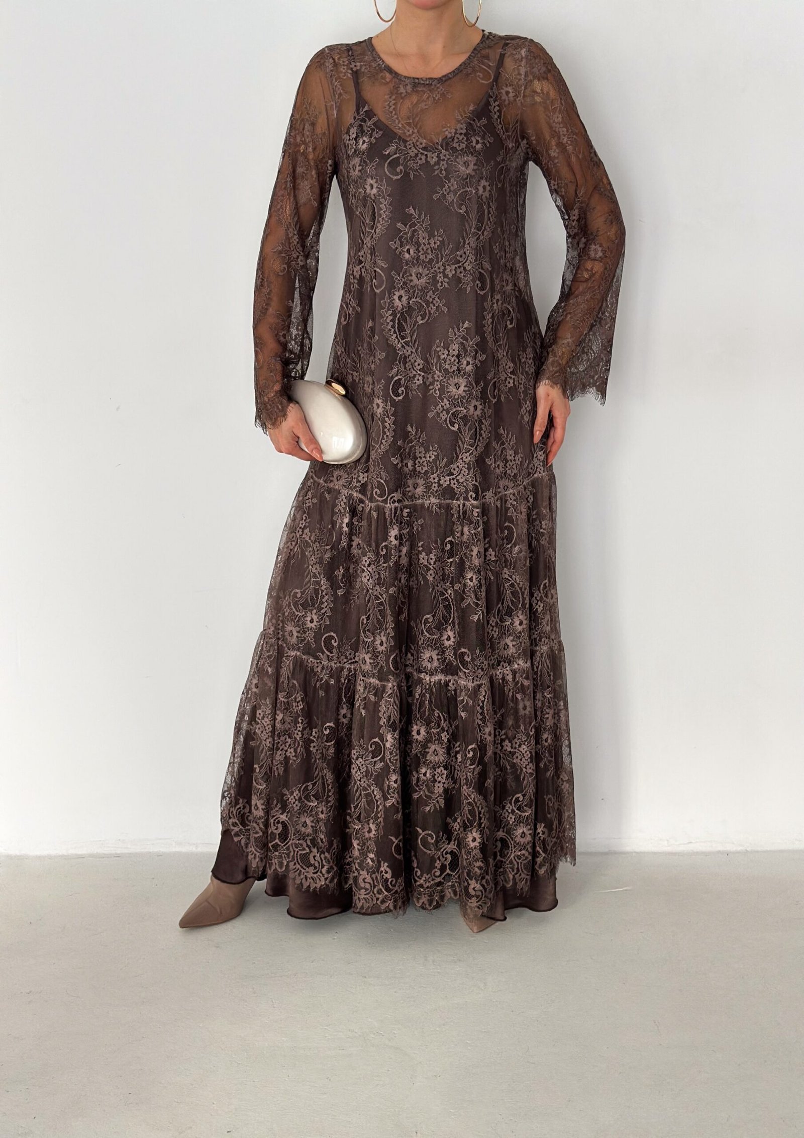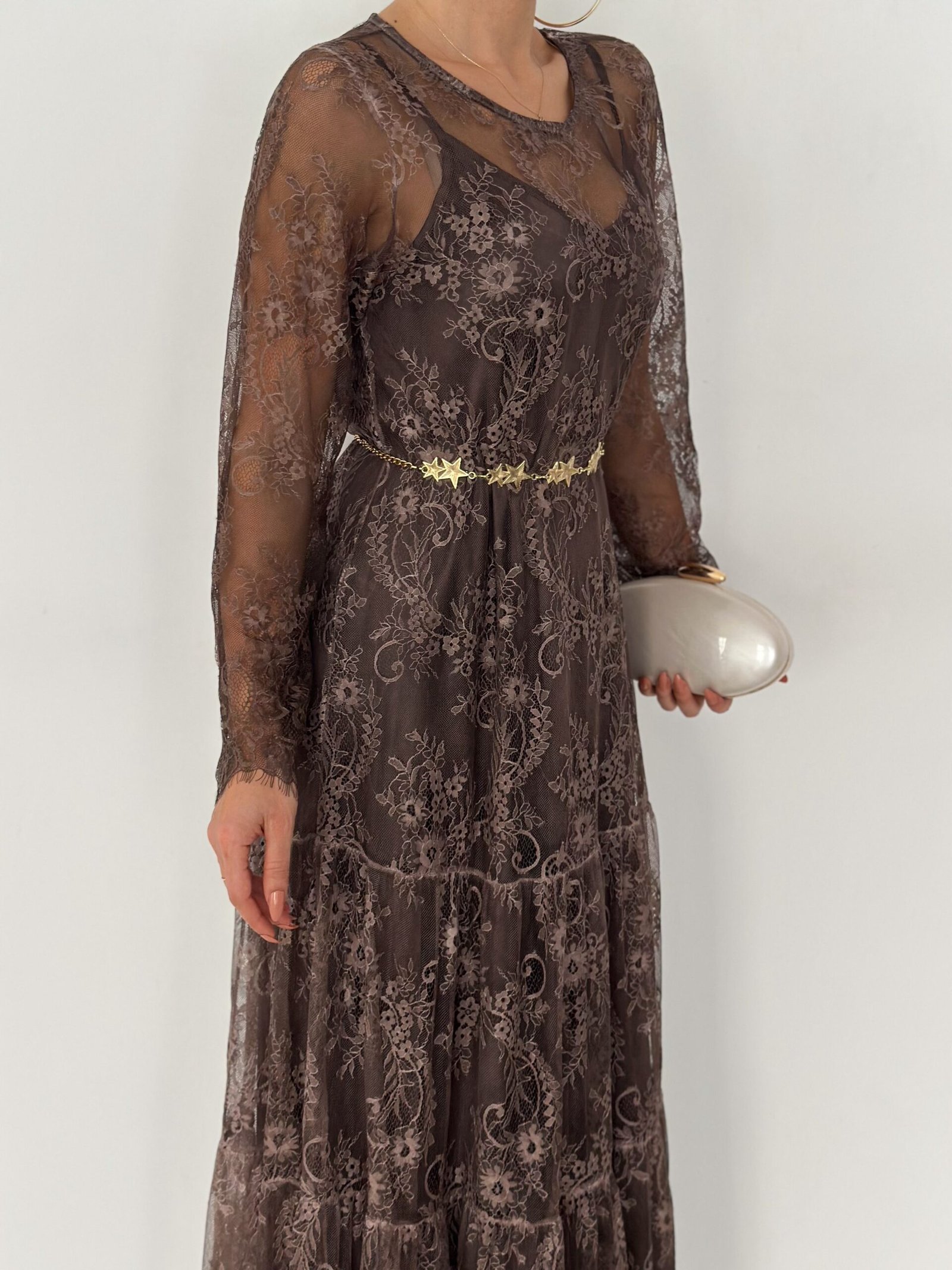 - Lace long-sleeve maxi dress (outer layer)