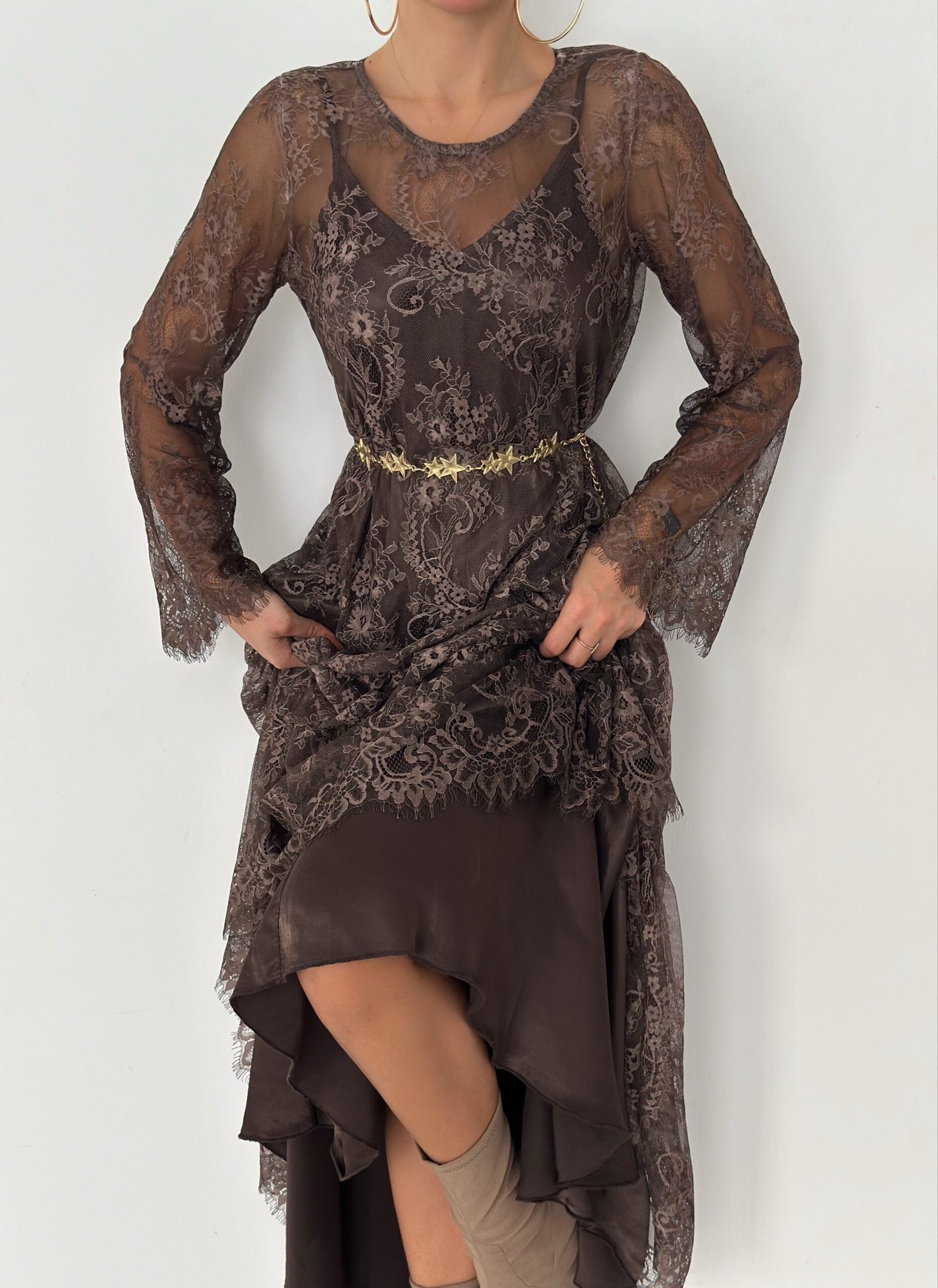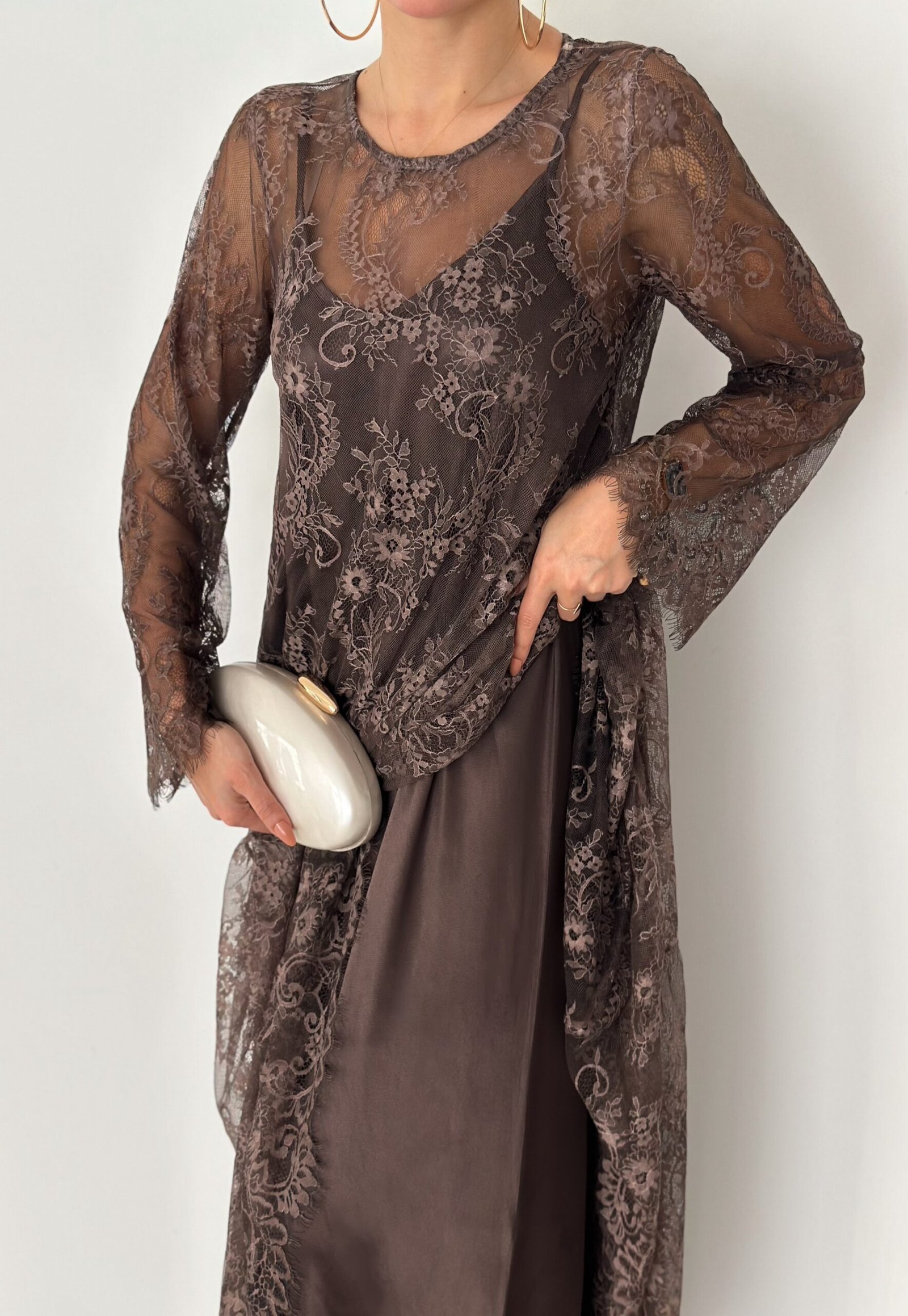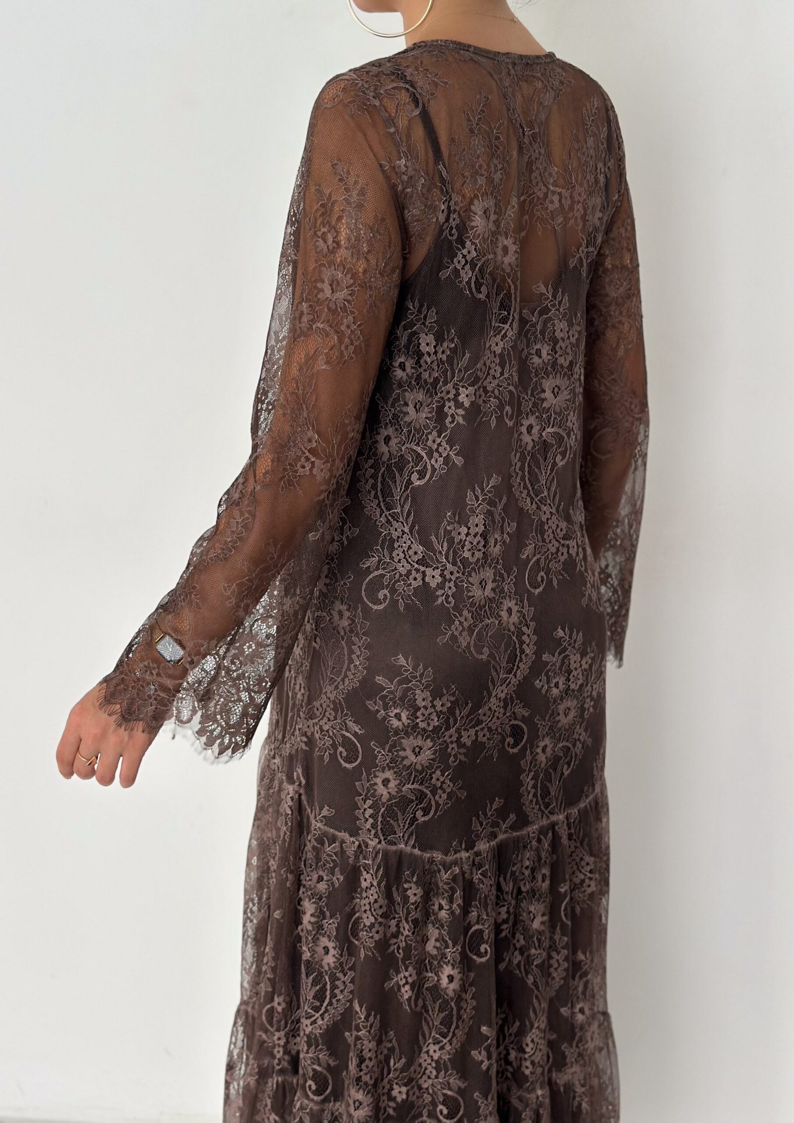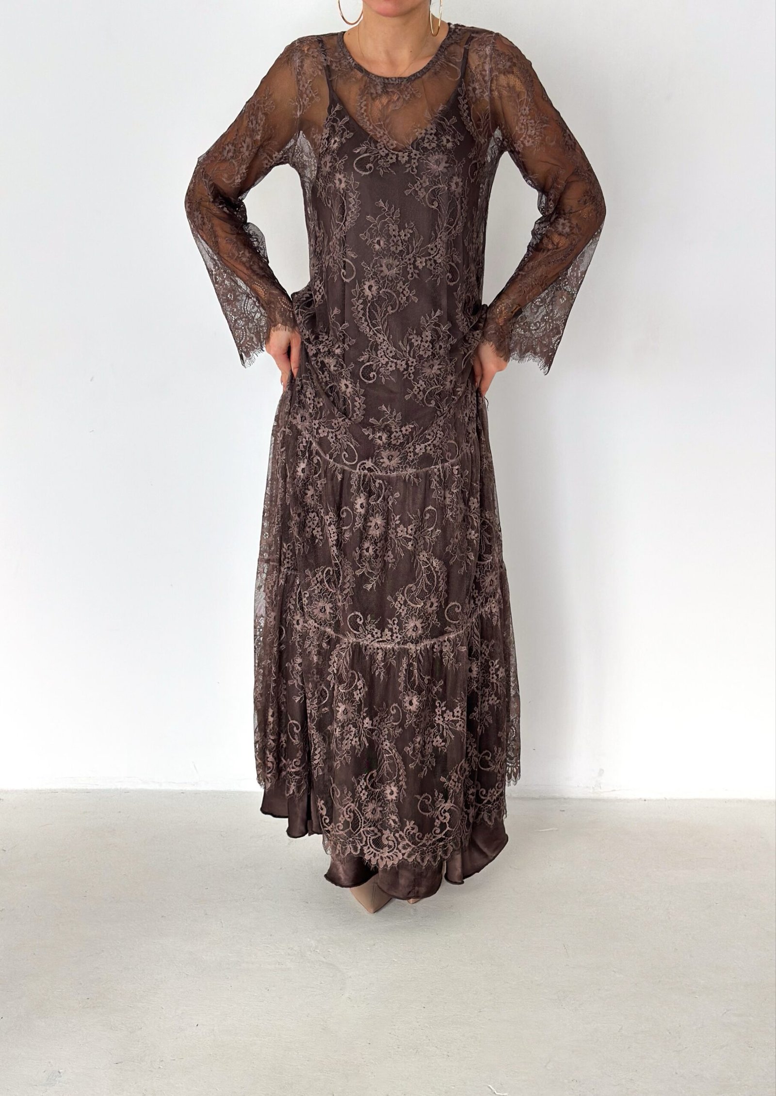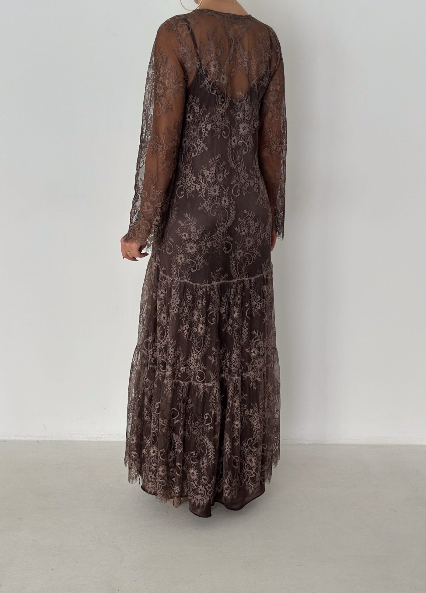 - Lace long-sleeve maxi dress (outer layer)