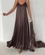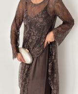 An elegant two-piece maxi dress designed to blend femininity with effortless sophistication. The set features a delicate lace outer dress layered over a smooth inner slip dress, creating a refined yet comfortable look suitable for both day and evening occasions.