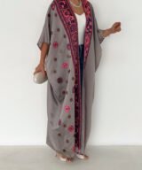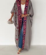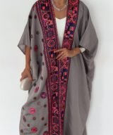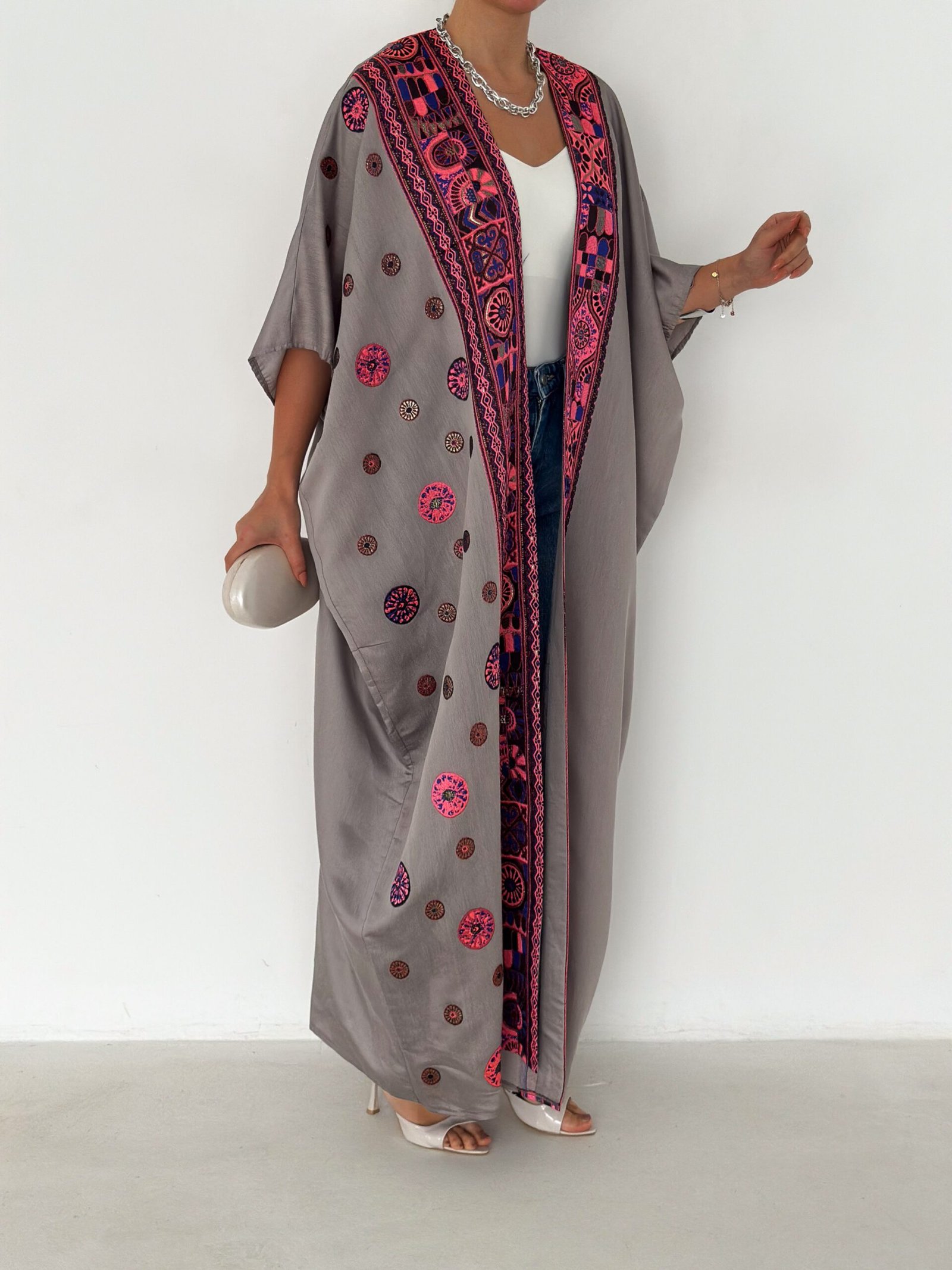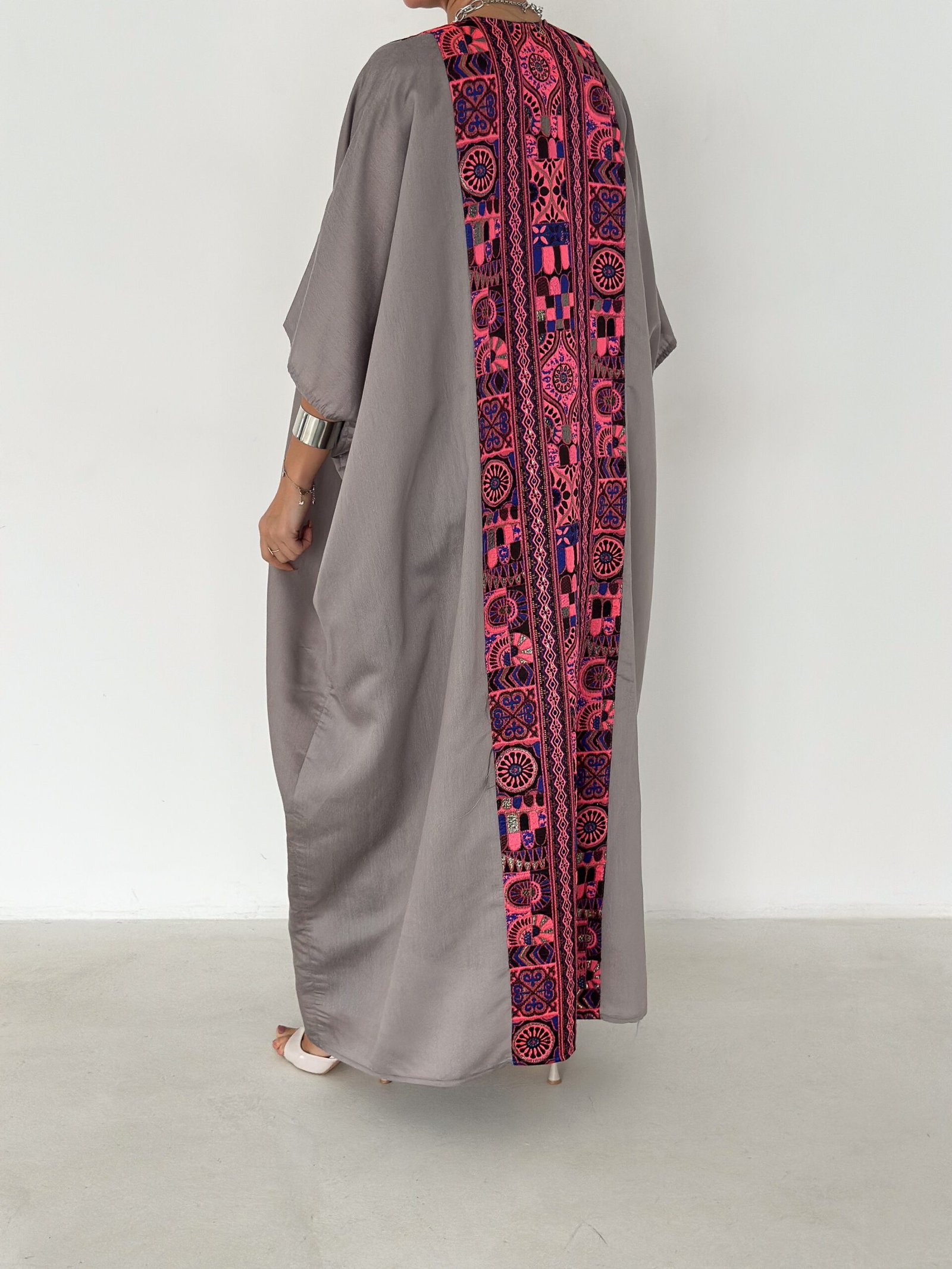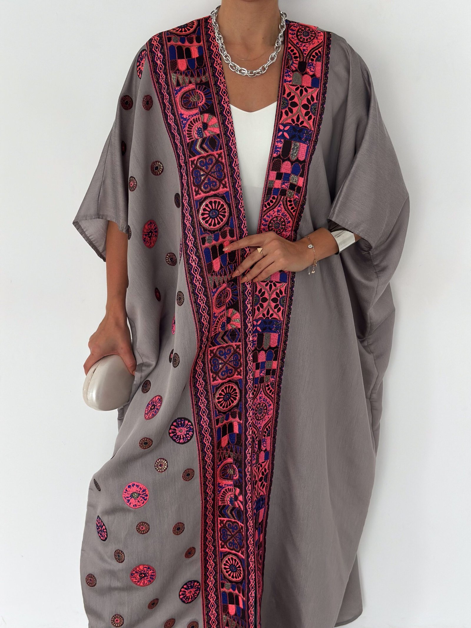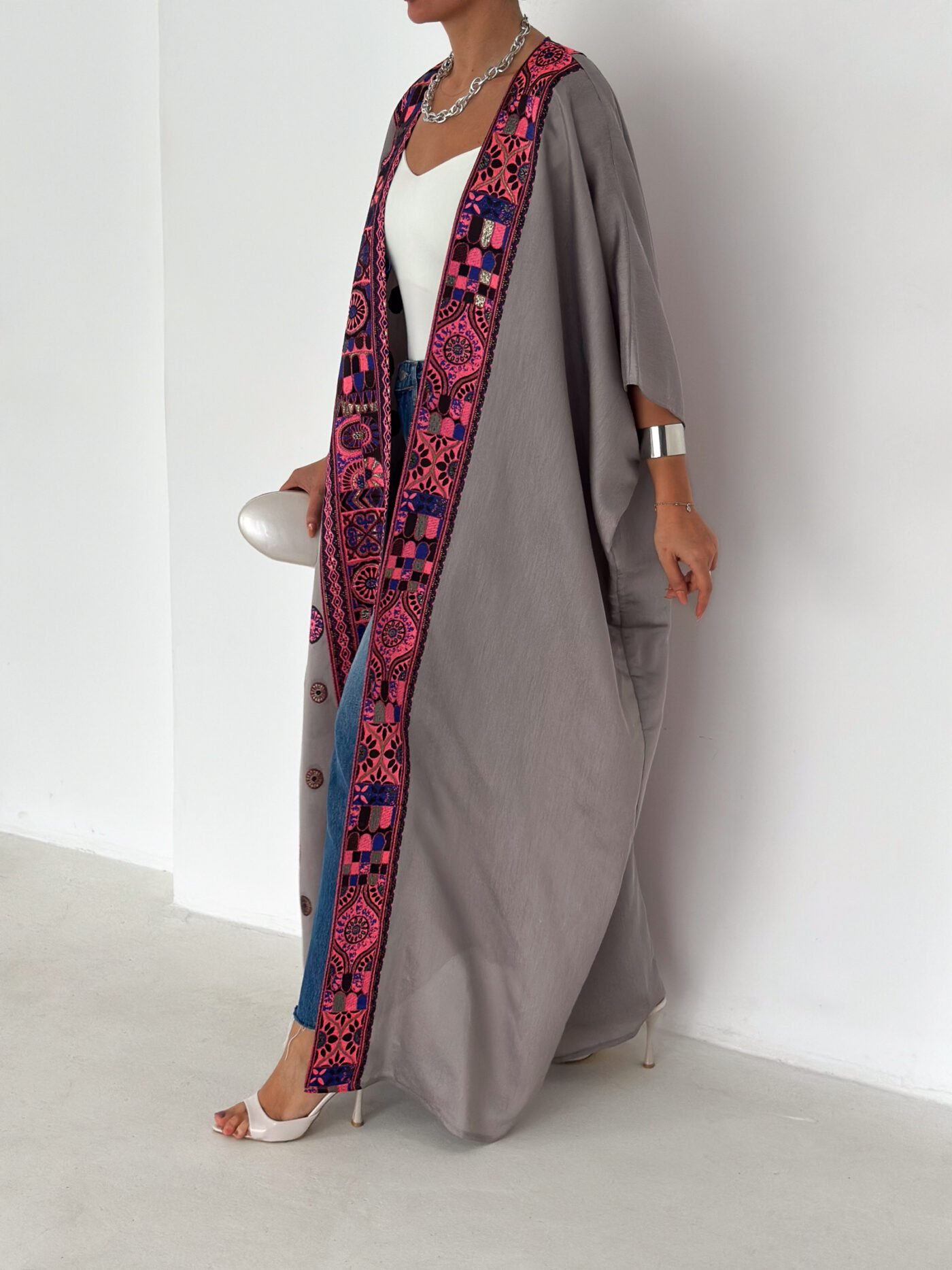 Crafted in a soft grey tone and elevated with vibrant ethnic embroidery along the front and back, this piece blends tradition with a modern, bohemian touch.