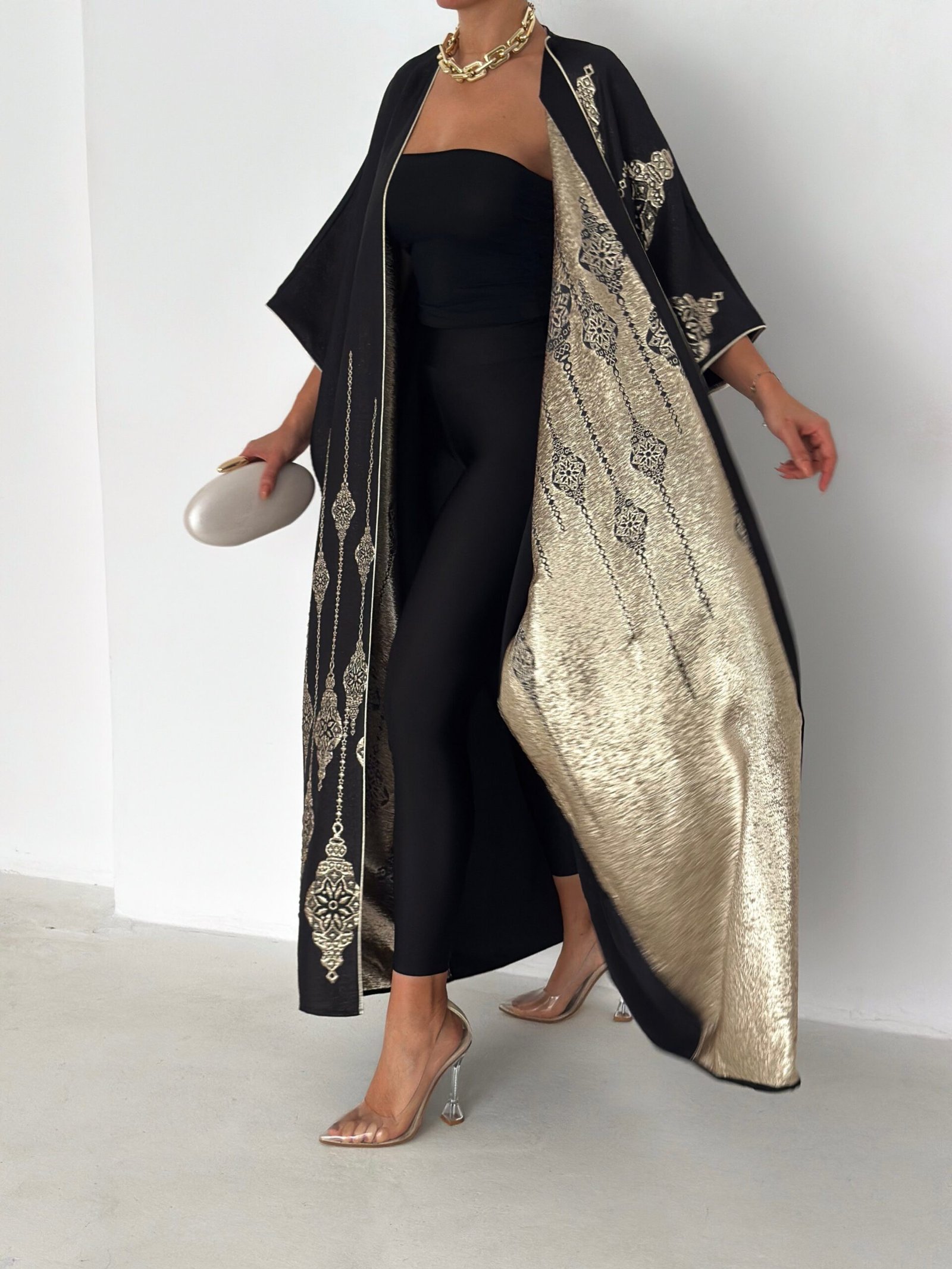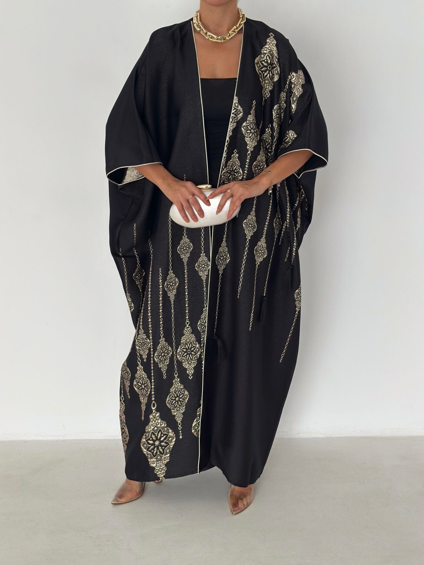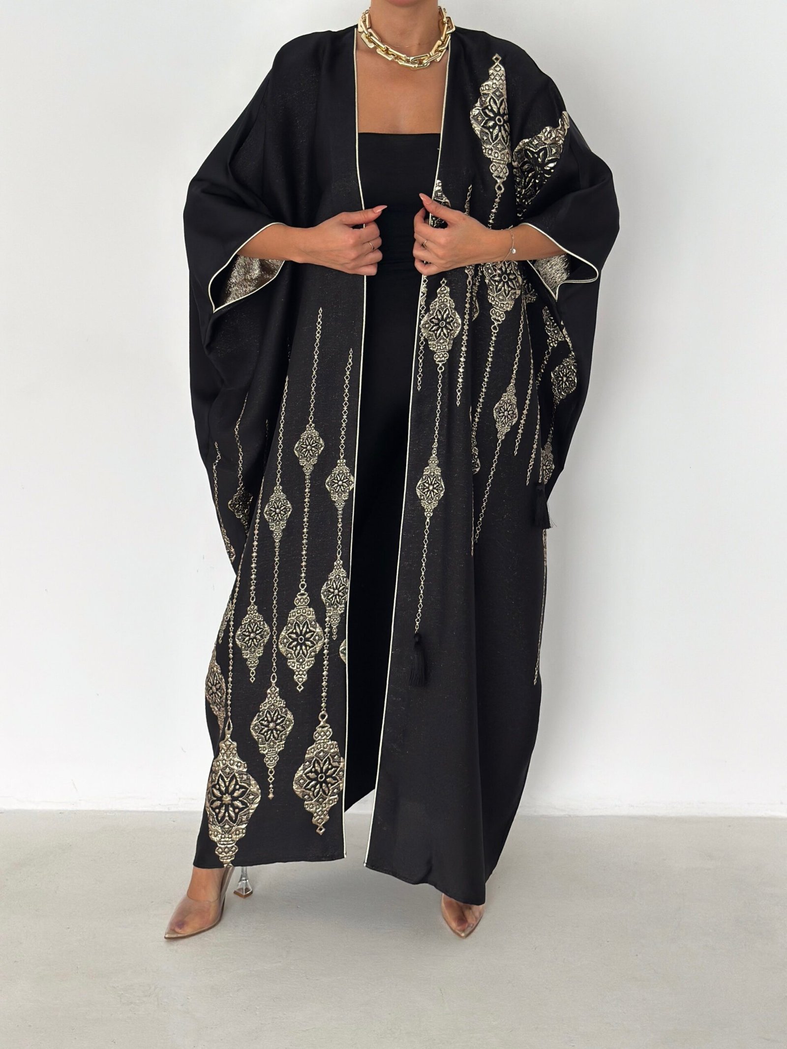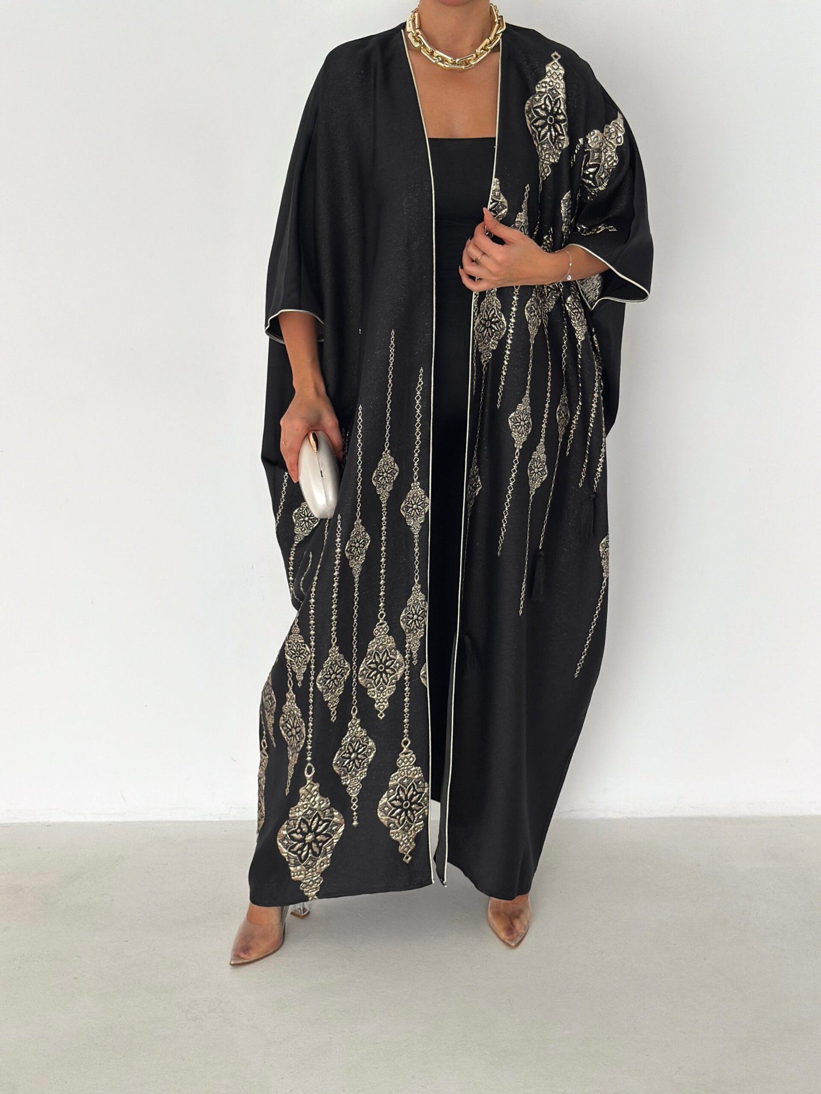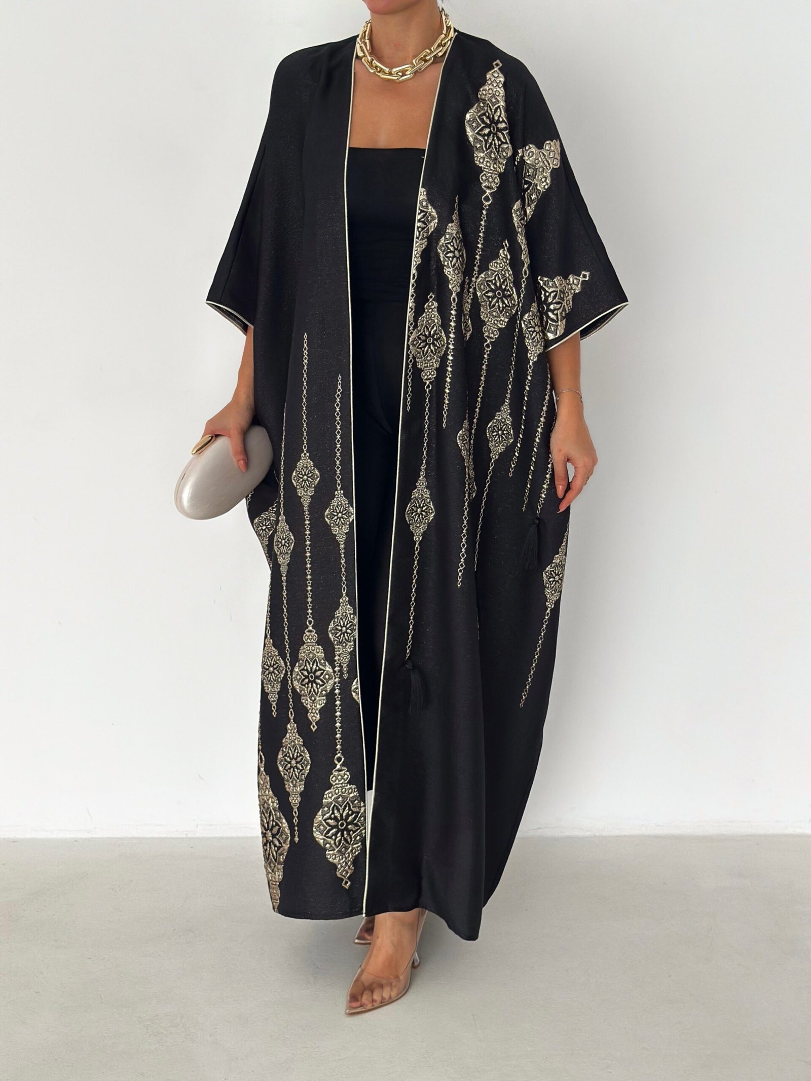 - Open-front abaya