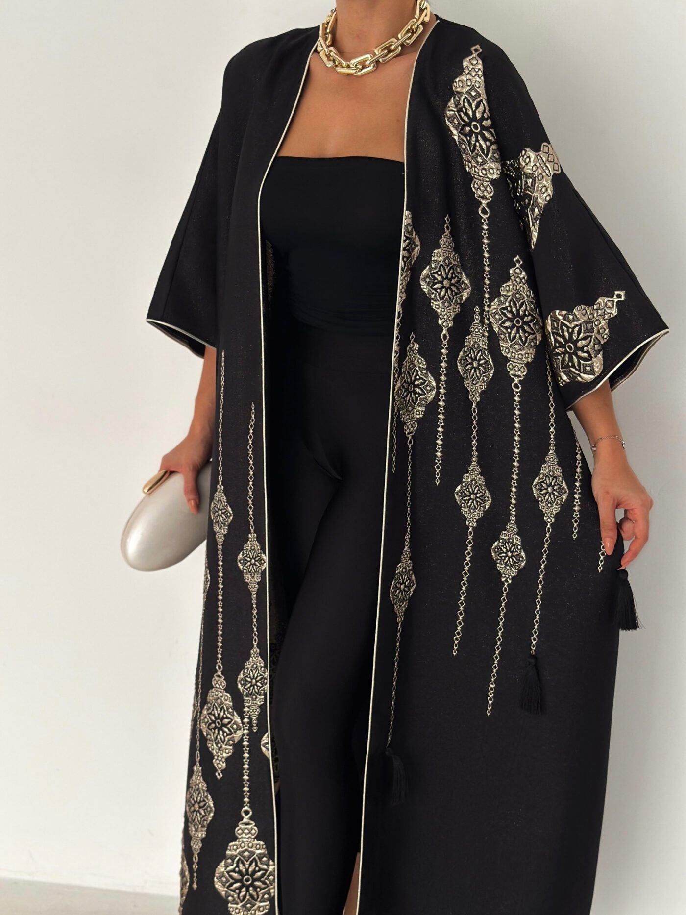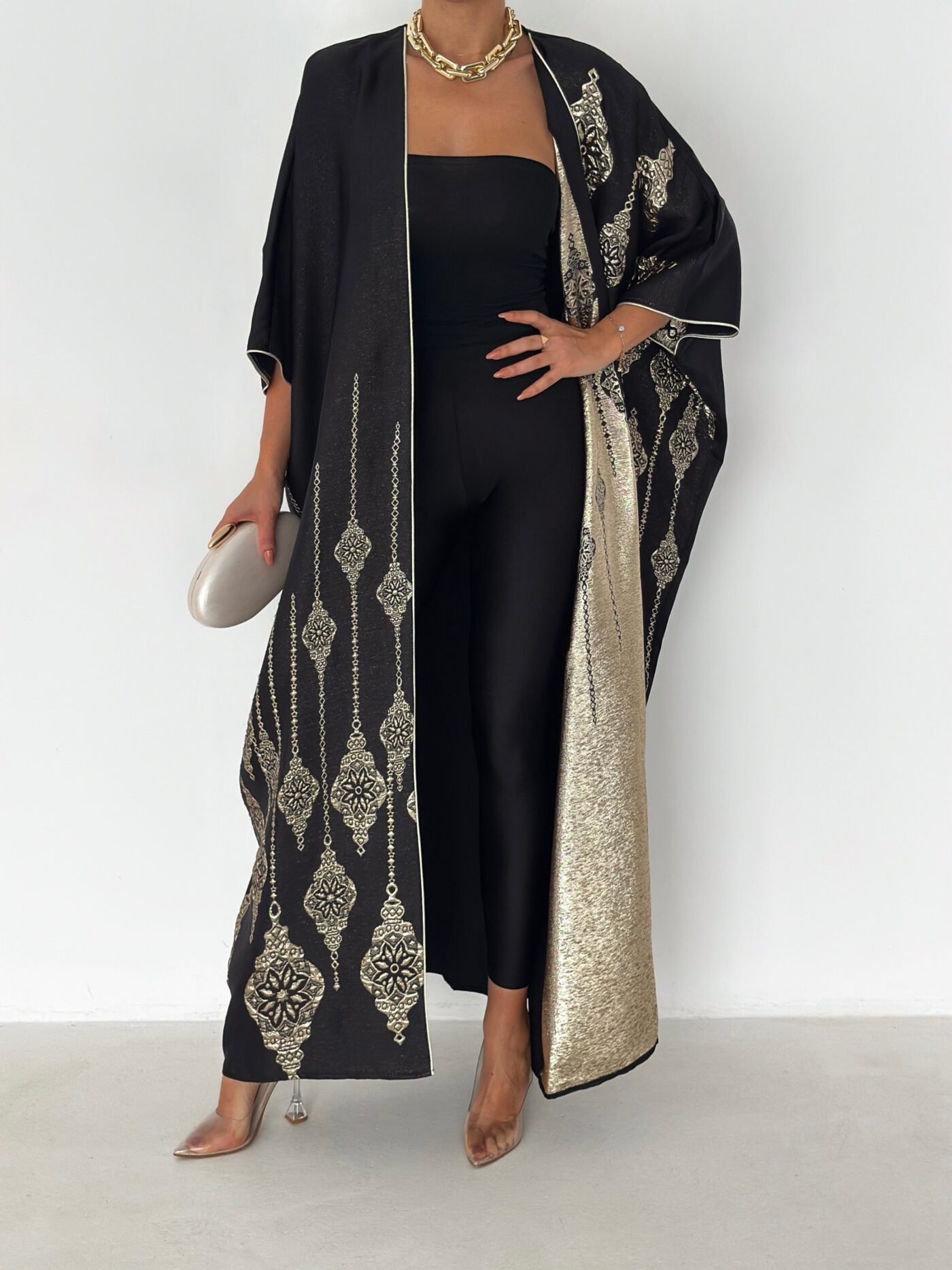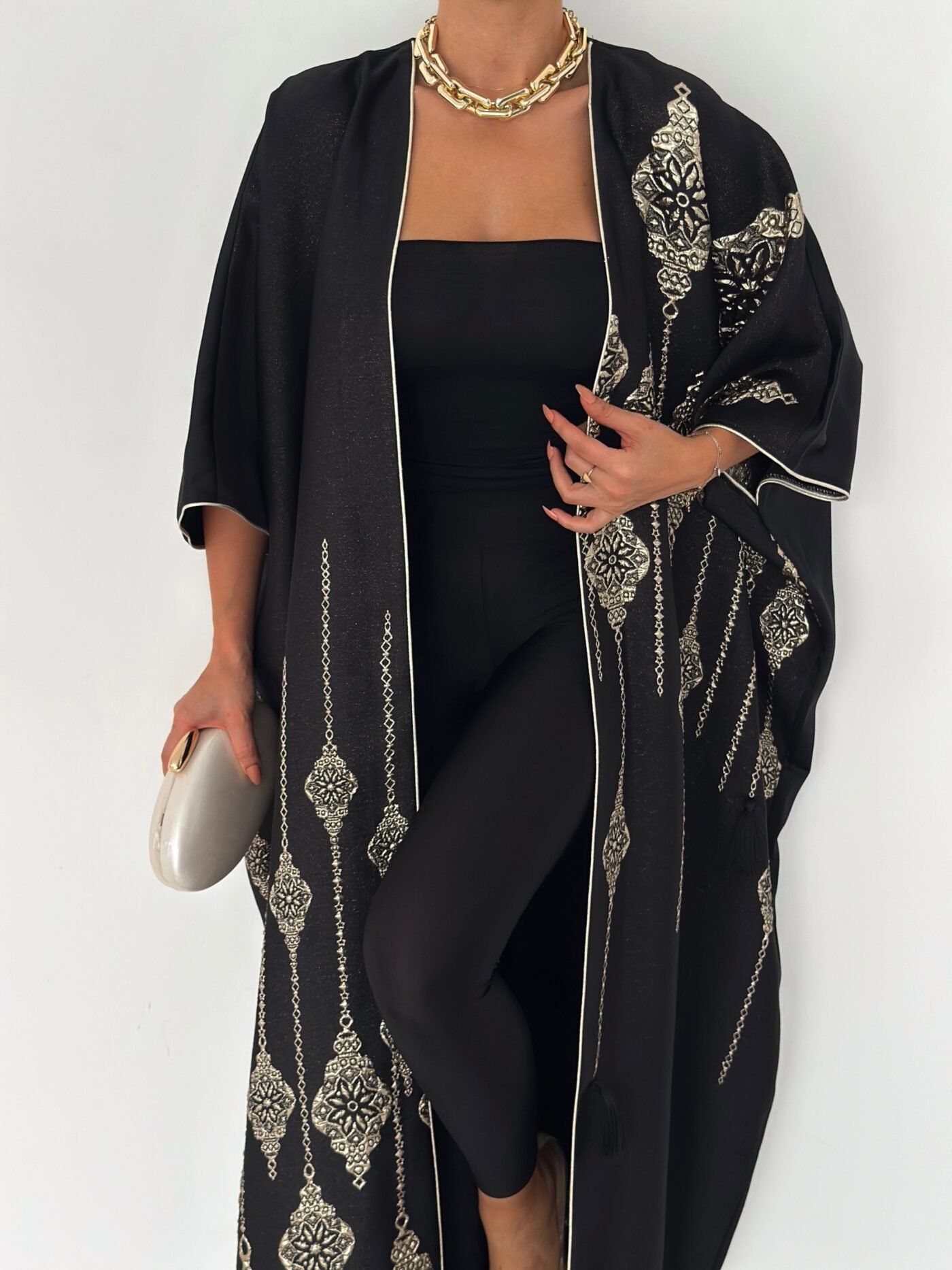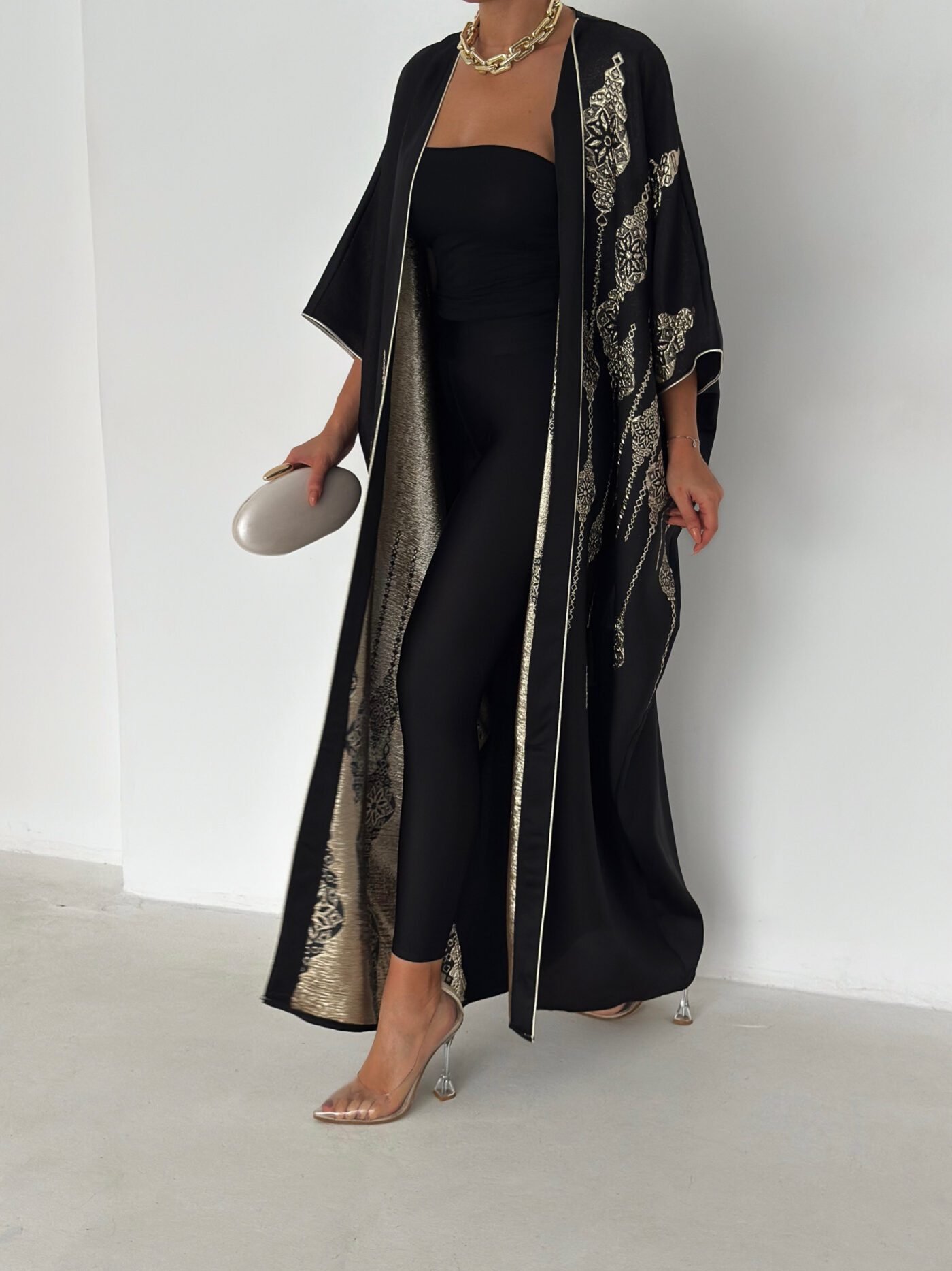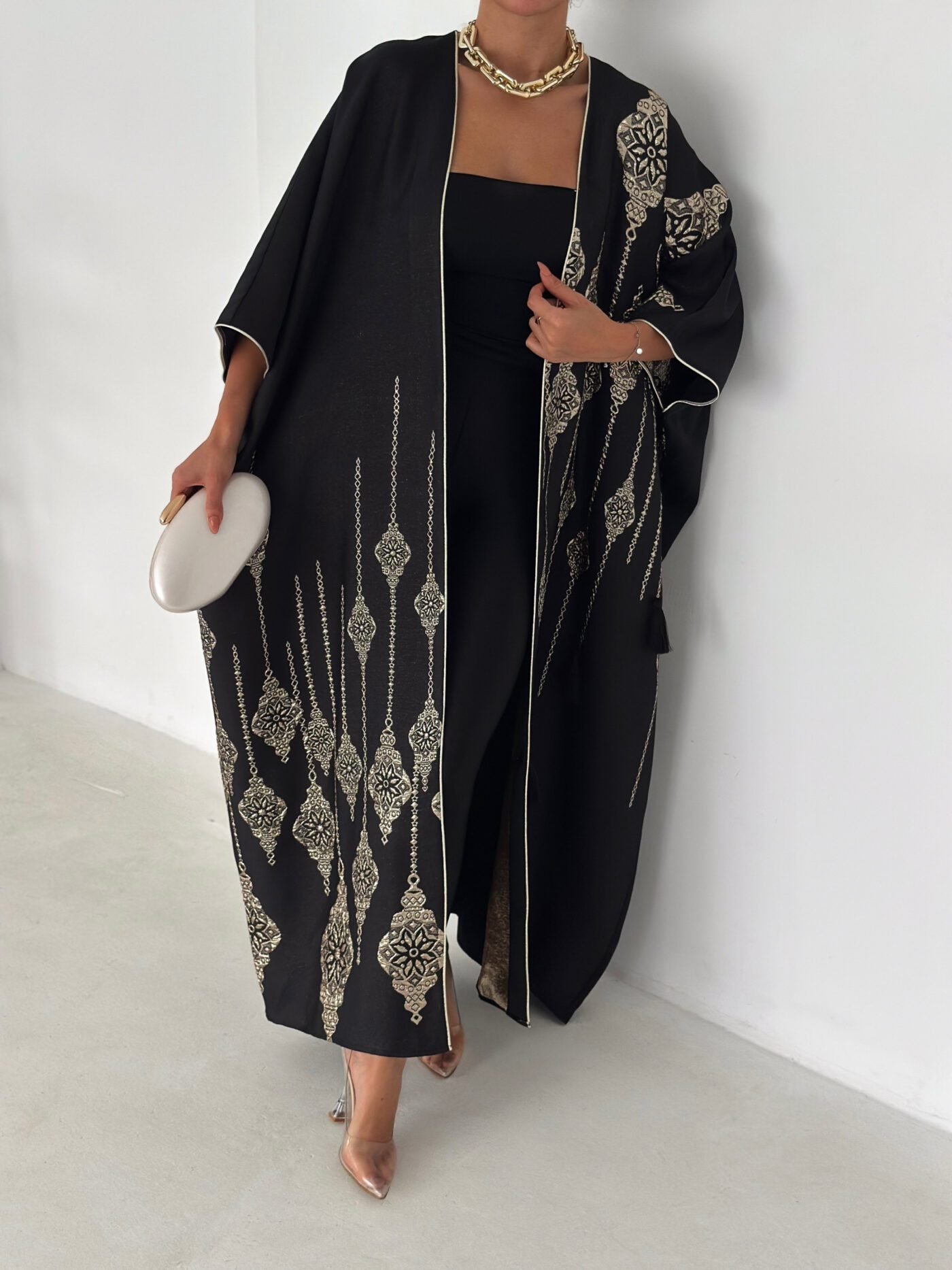 - Open-front abaya