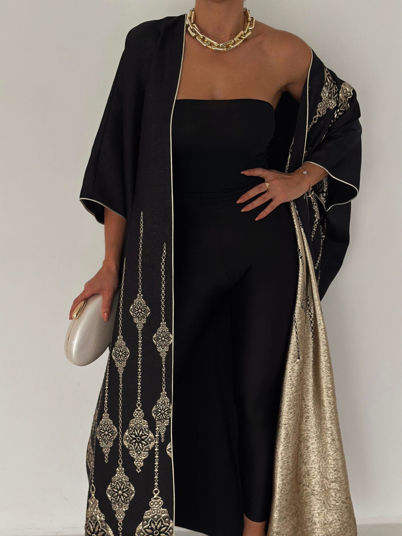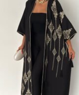 An elegant open abaya designed for effortless everyday sophistication. Crafted in a soft neutral tone with subtle heritage-inspired detailing, this piece flows beautifully and adds a refined touch to any look. Lightweight and versatile, it’s perfect for daytime outings, travel, and casual chic styling.