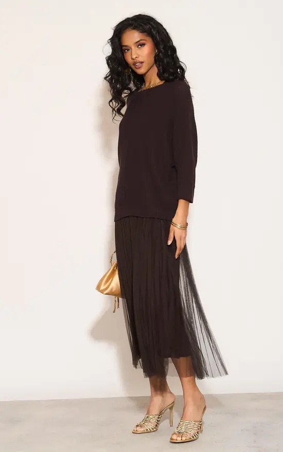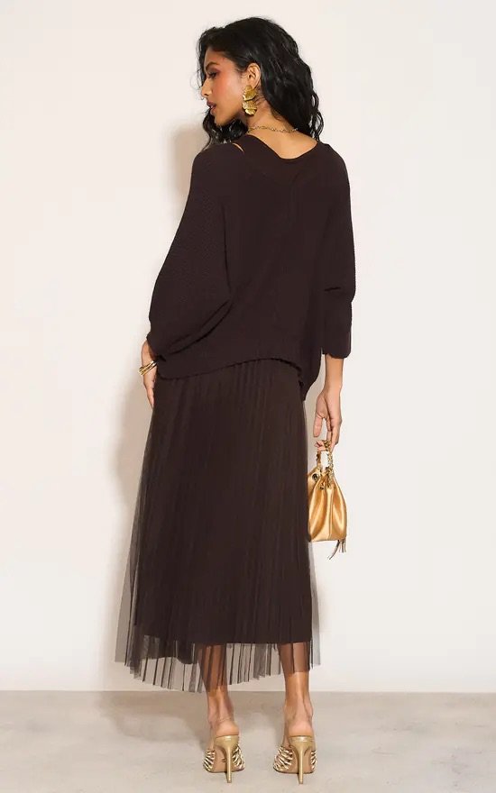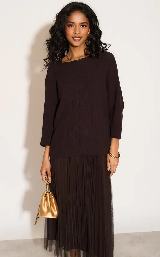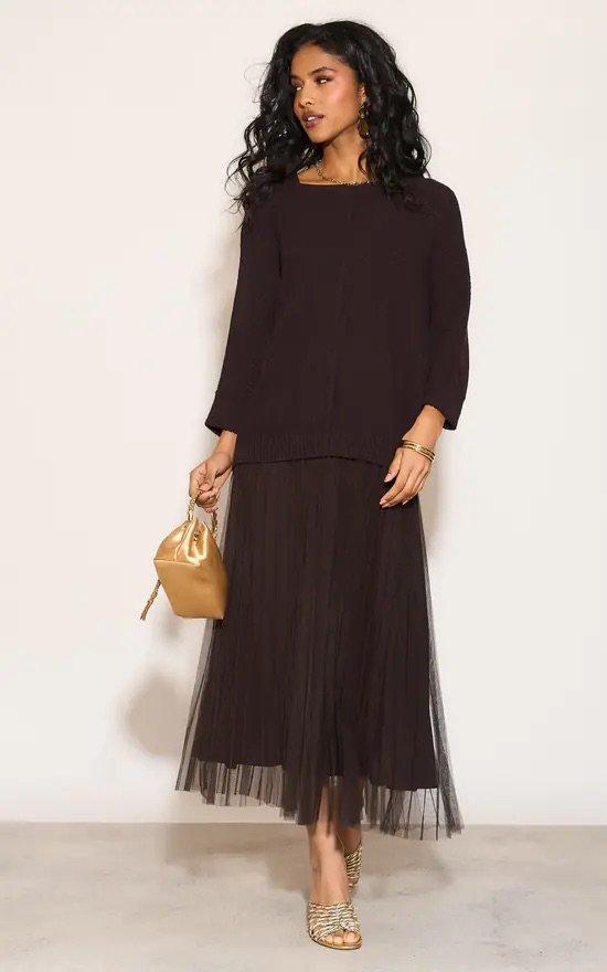 Whether you are dressing up for a formal event or looking for a chic casual outfit, the Luxe Layers Set is adaptable. The jumper, easily paired with the dress or worn alone, offers multiple styling options, making it a staple addition to any wardrobe.