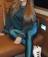 Lycra® high waisted women’s jungle green leggings with high elasticity, shiny finish, tight shape, high waist and anatomical waistband.`