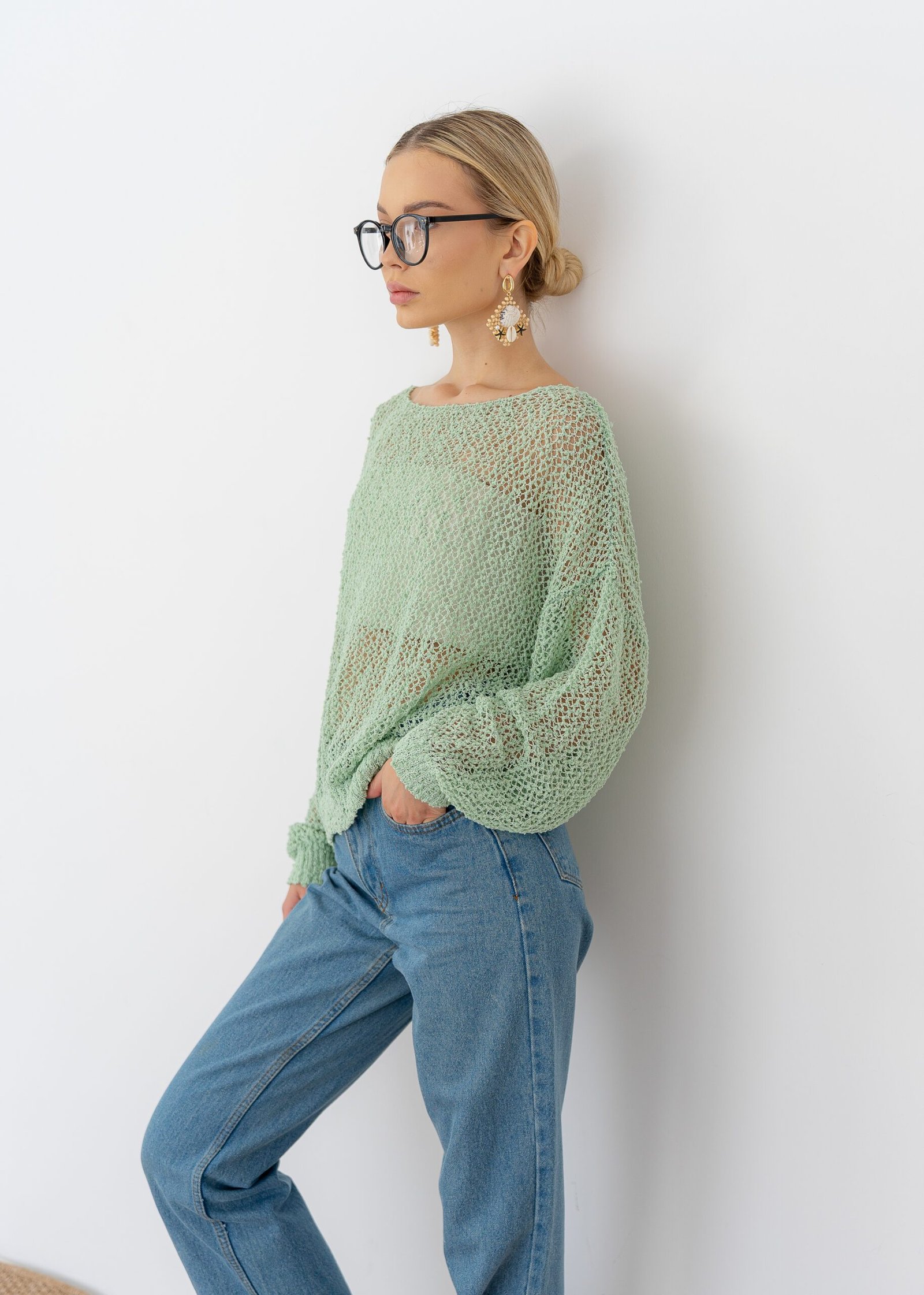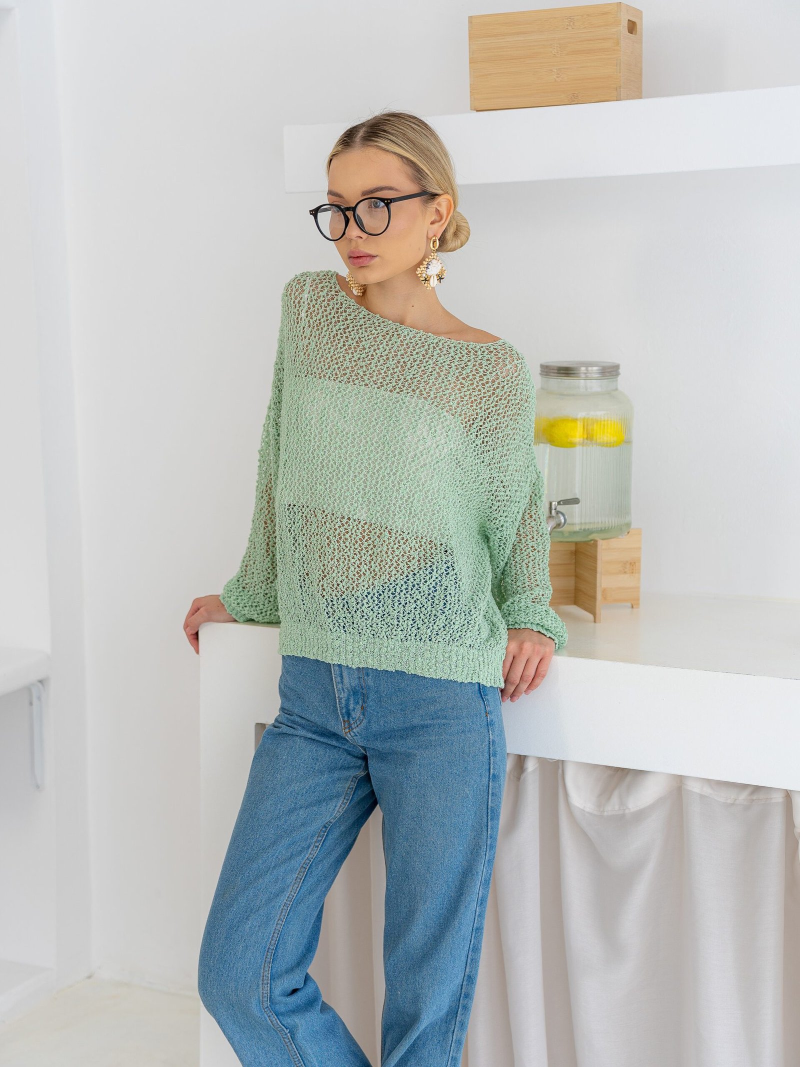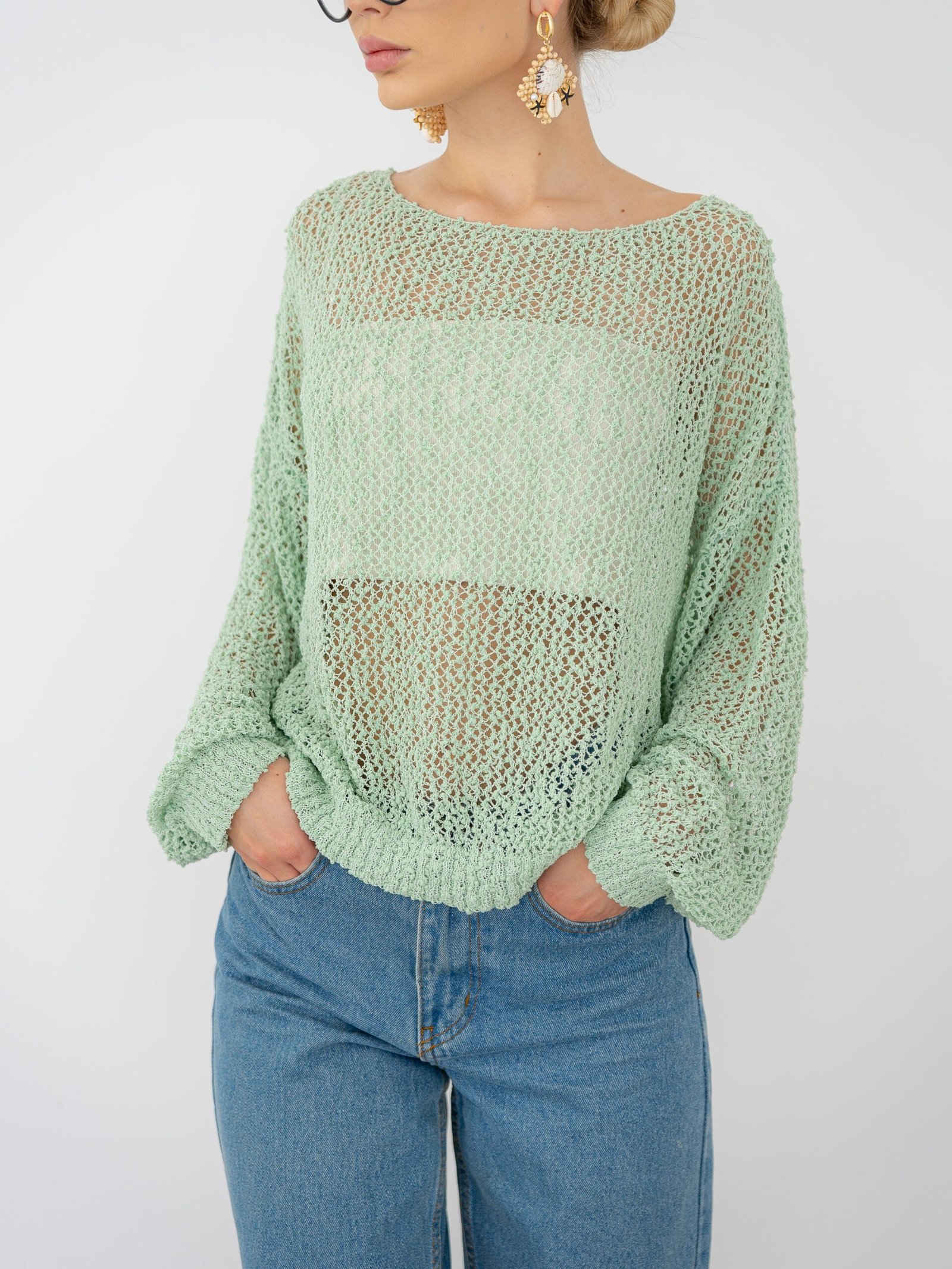 Mesh Knit Sweater – Mint Green