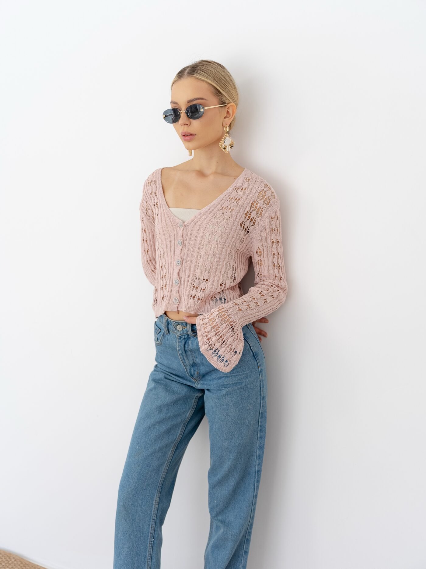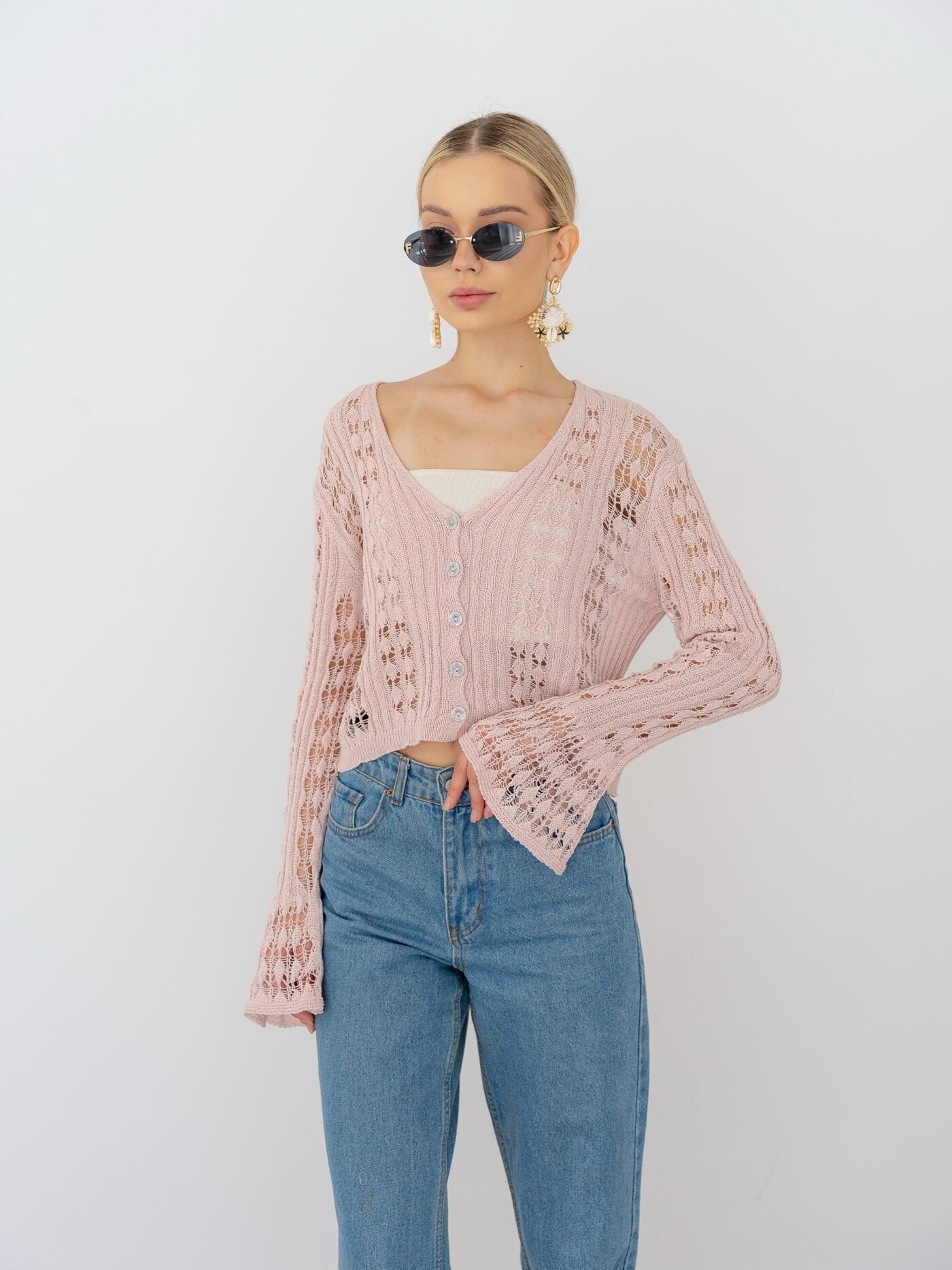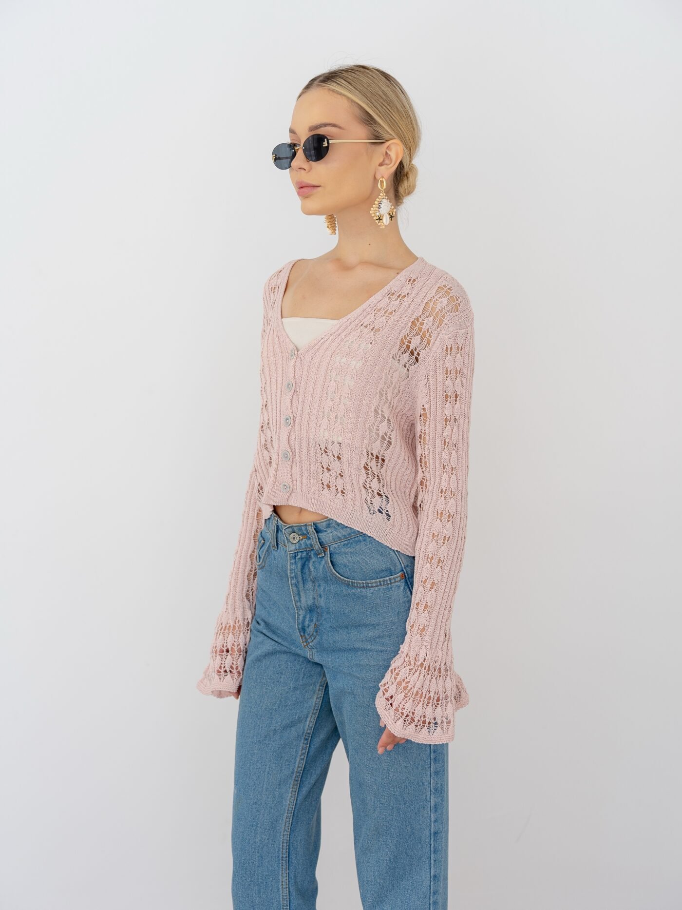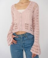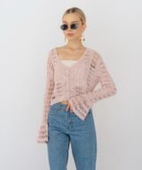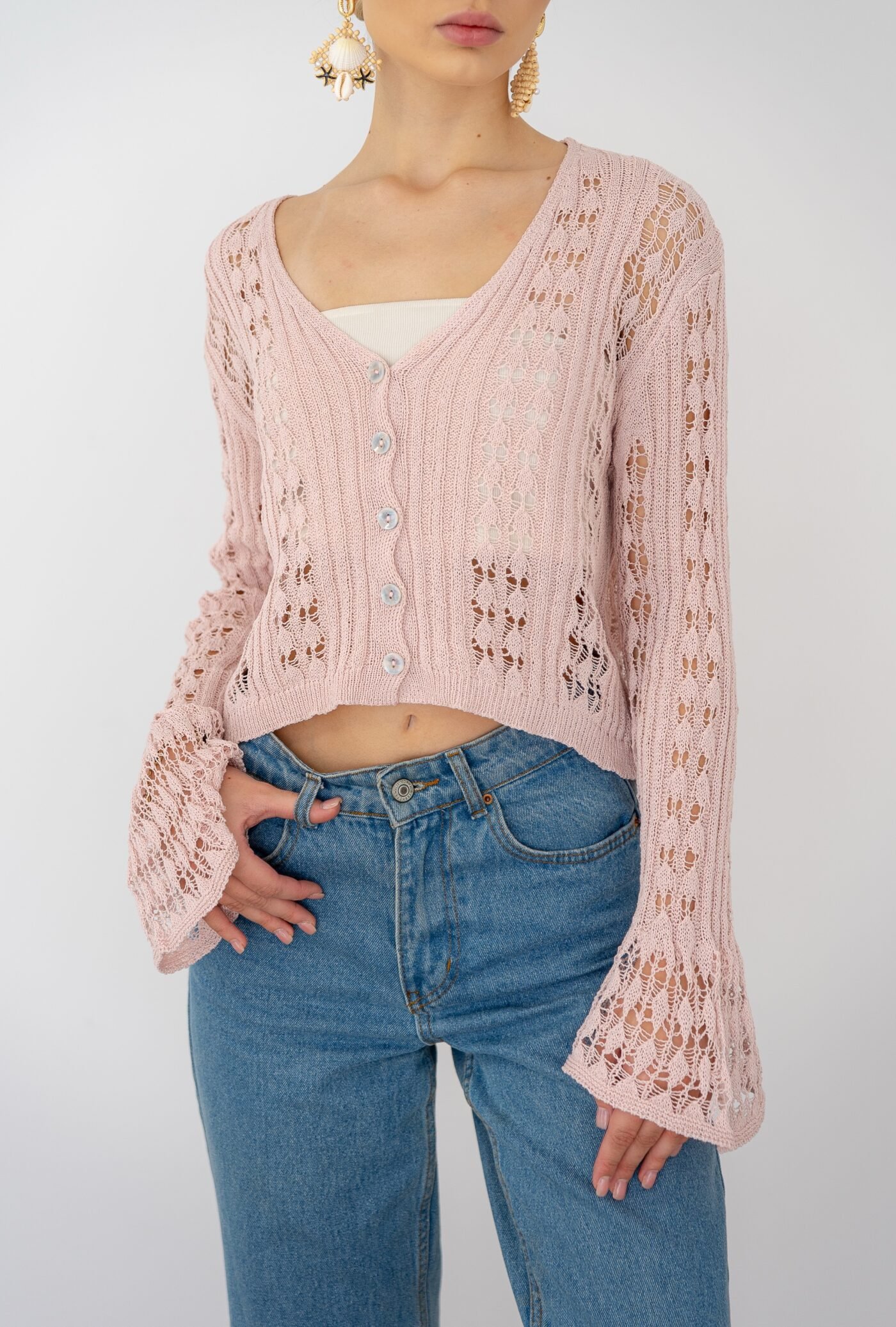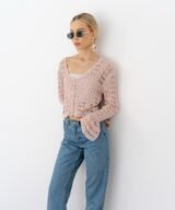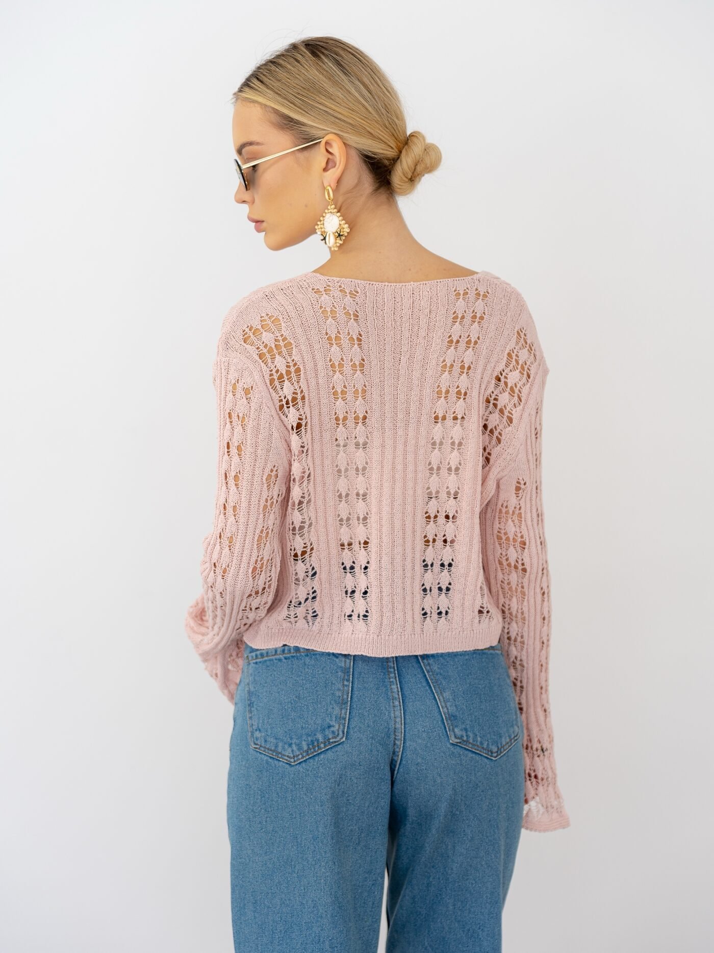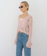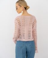 A lightweight, airy mesh knit sweater in soft lavender. Perfect for layering and adding a touch of color to your look.