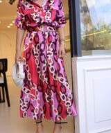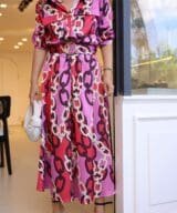 Mother of Pearl Button Chain Pattern Belt Dress