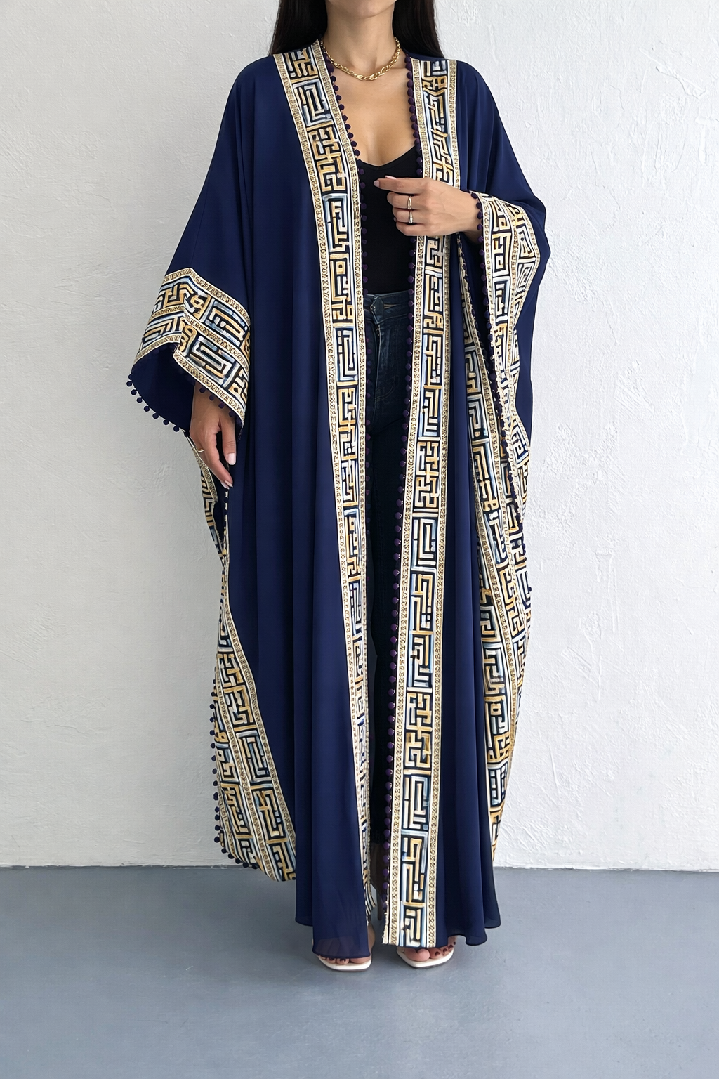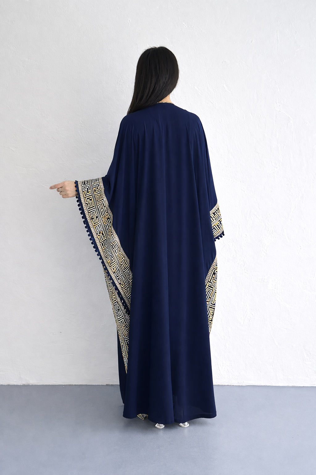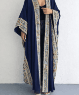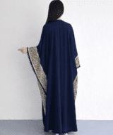 Navy Blue Chiffon Abaya With Embroidery Design