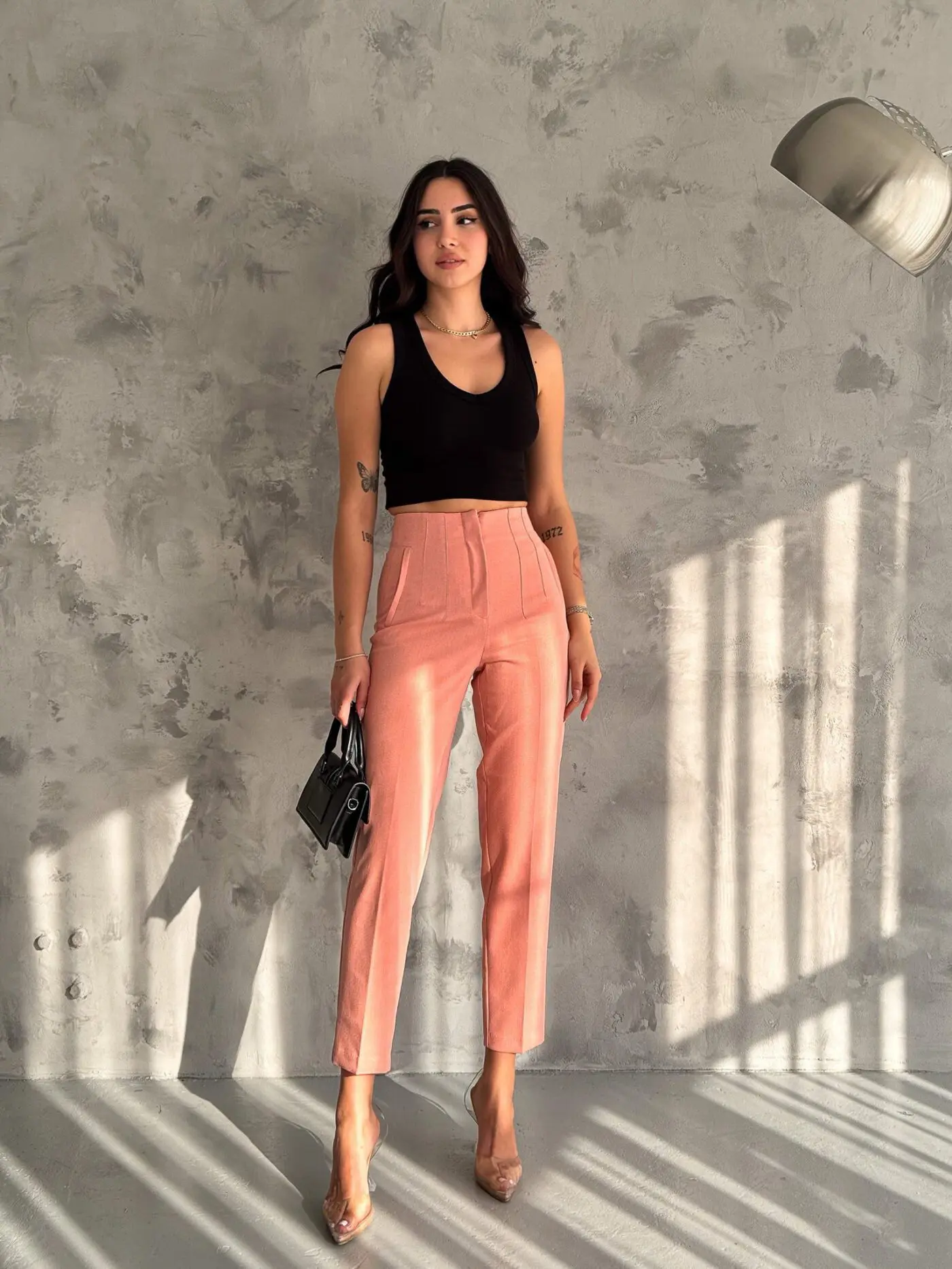 Orange High Waist Pleated Pants