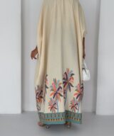 Crafted in a soft cream textured fabric and finished with intricate turquoise and terracotta borders, this piece features beautiful palm motifs that add a bold yet refined statement.
