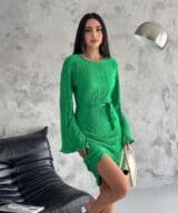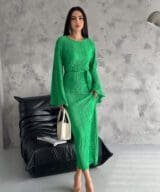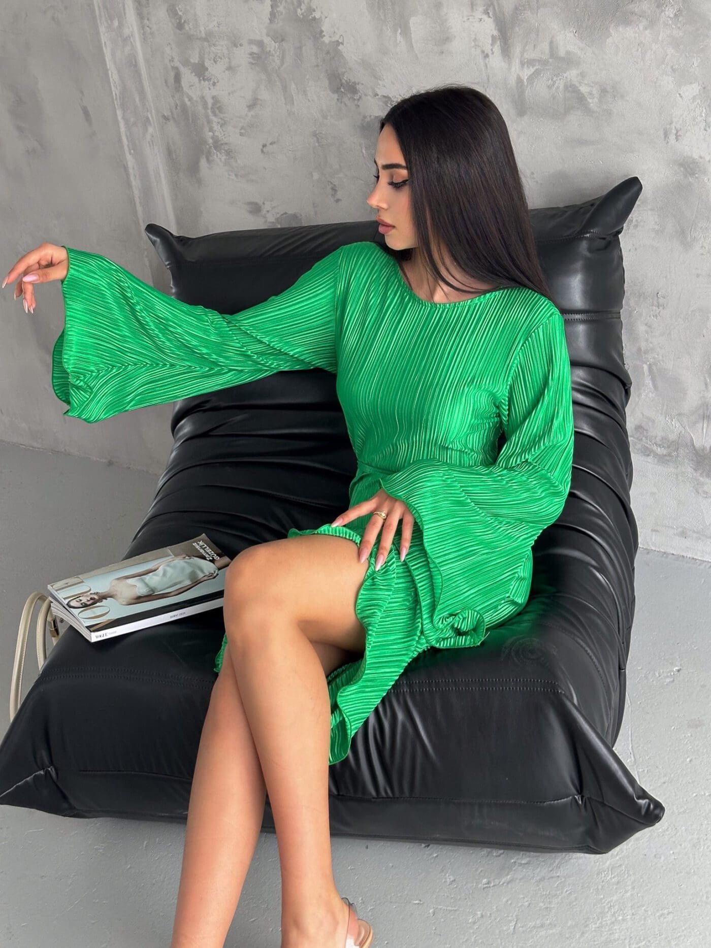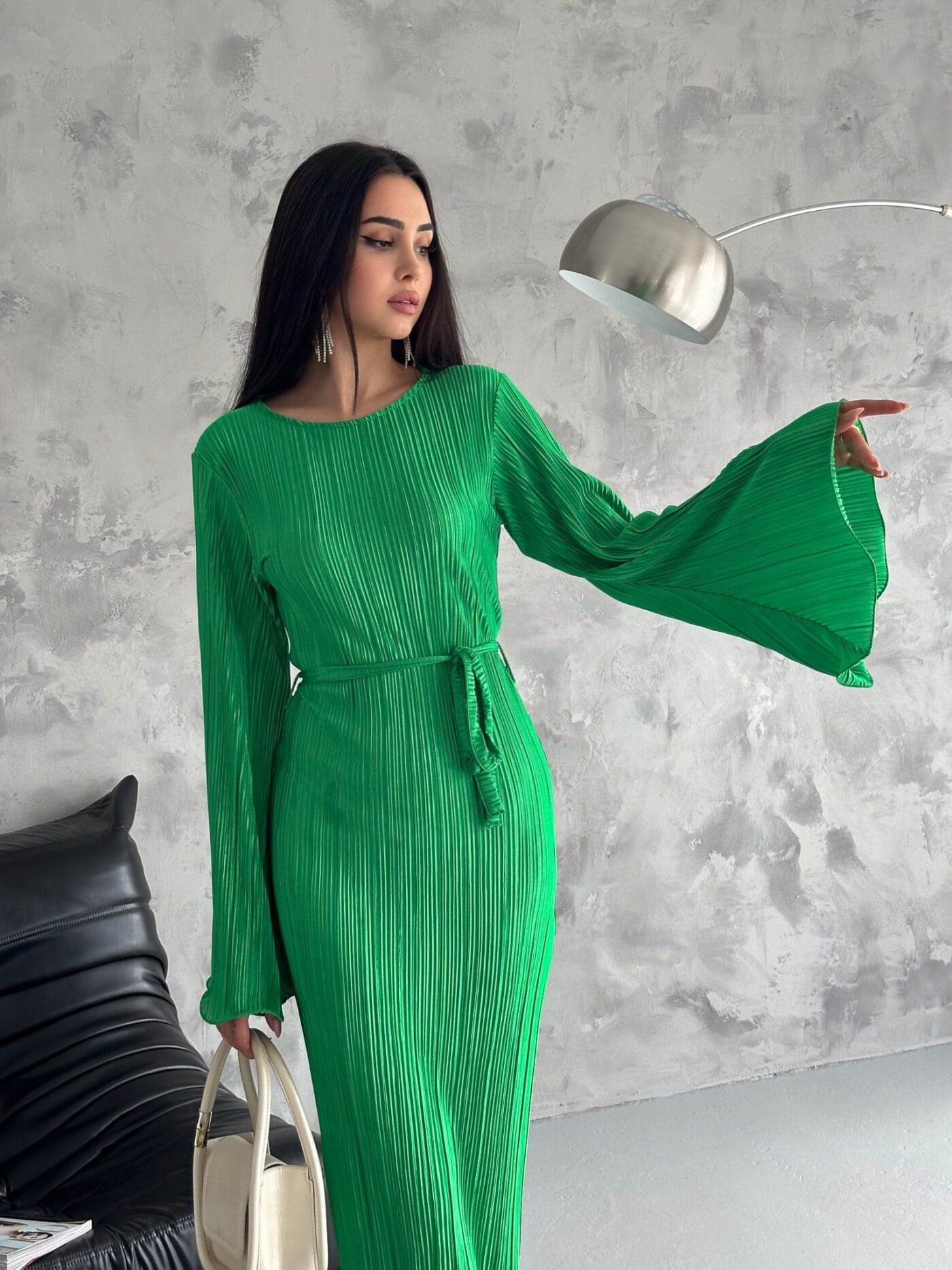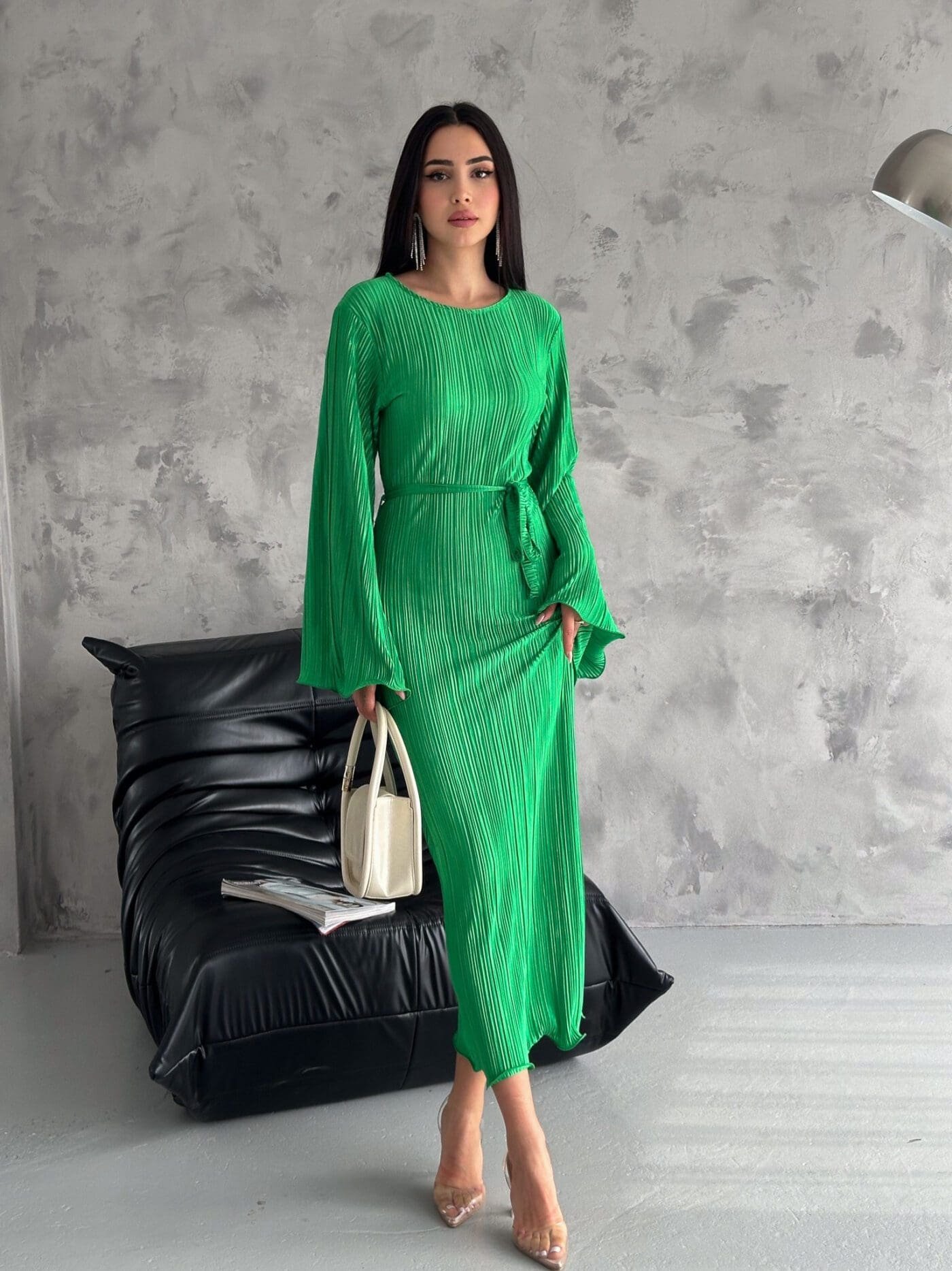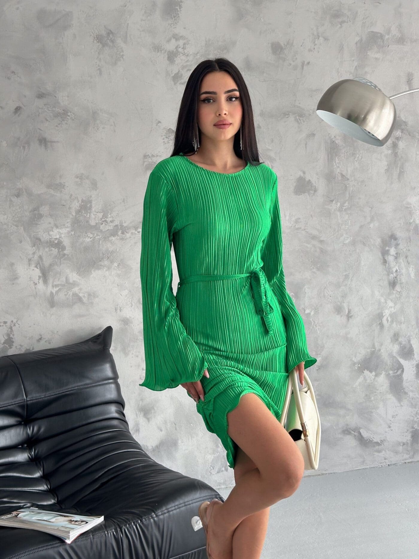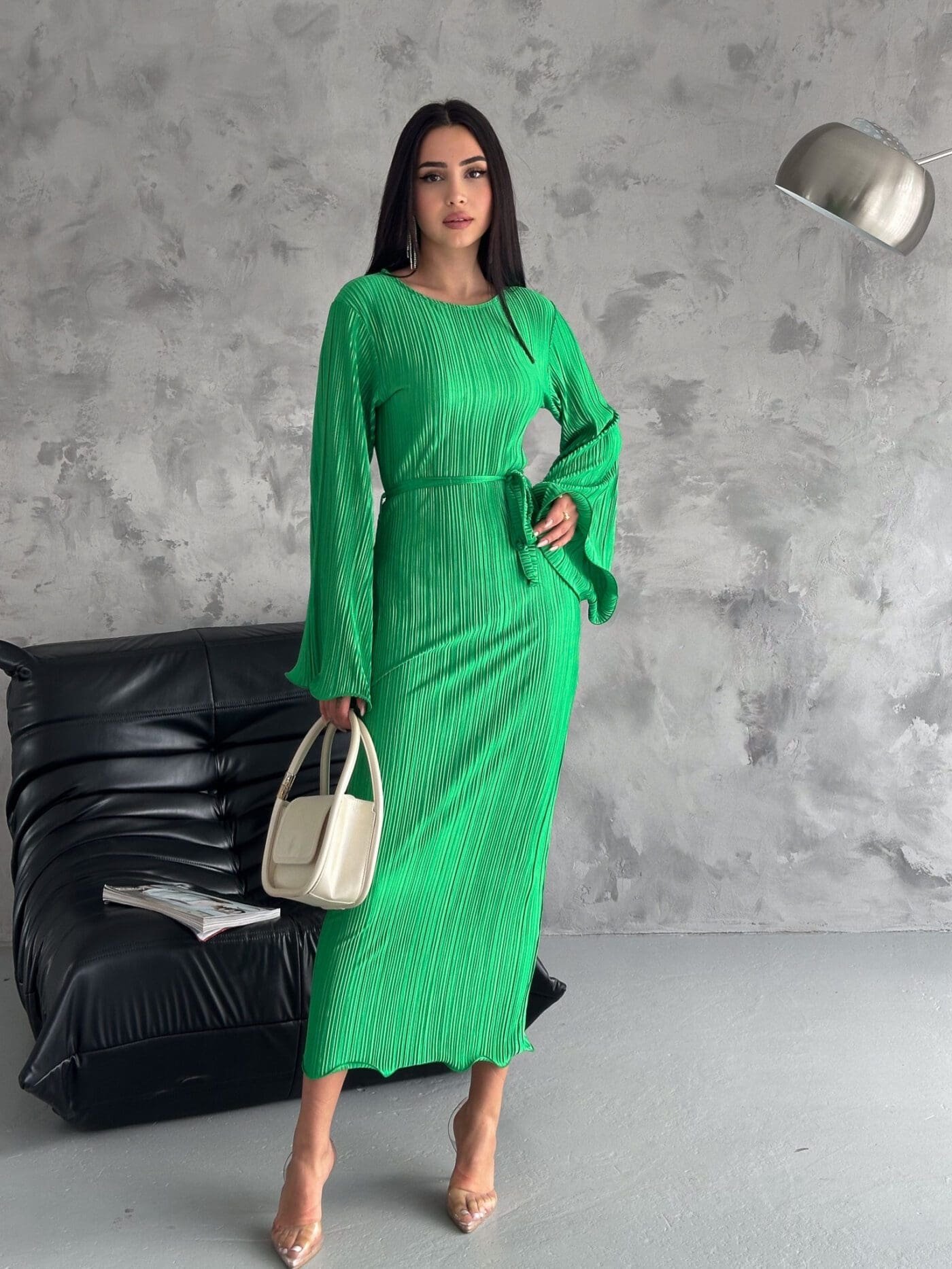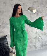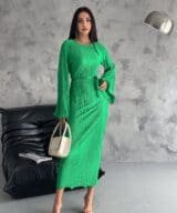 Pleated Midi Dress – Grass Green