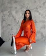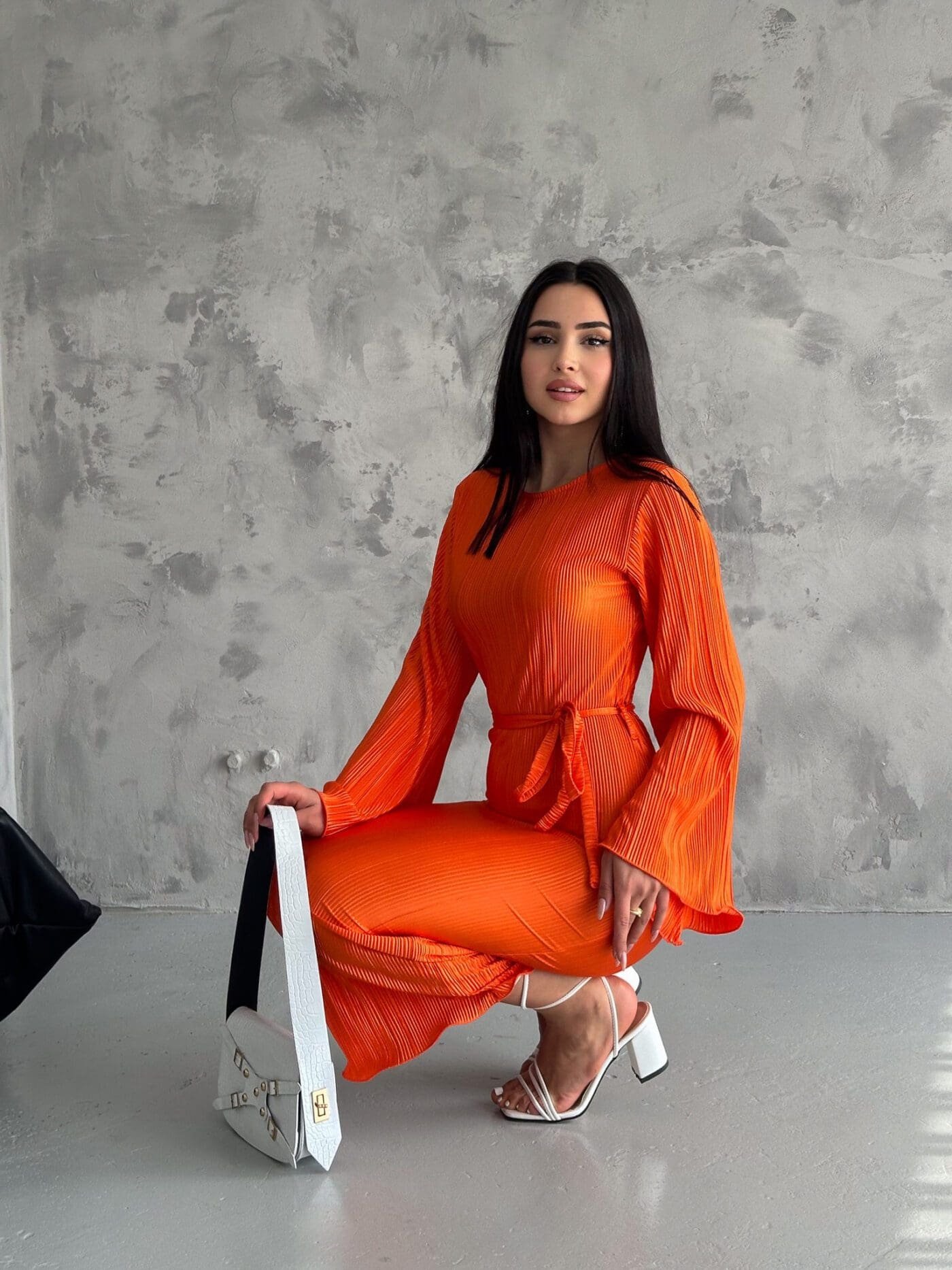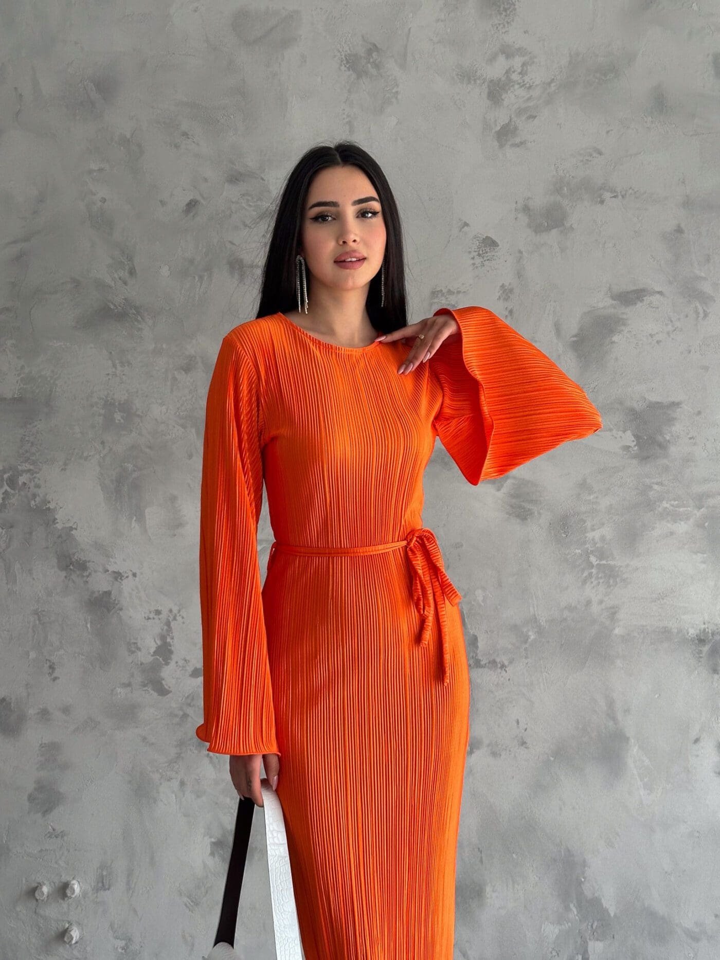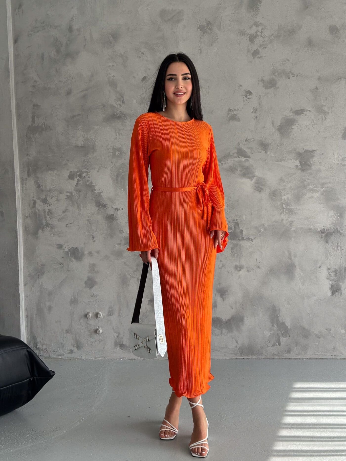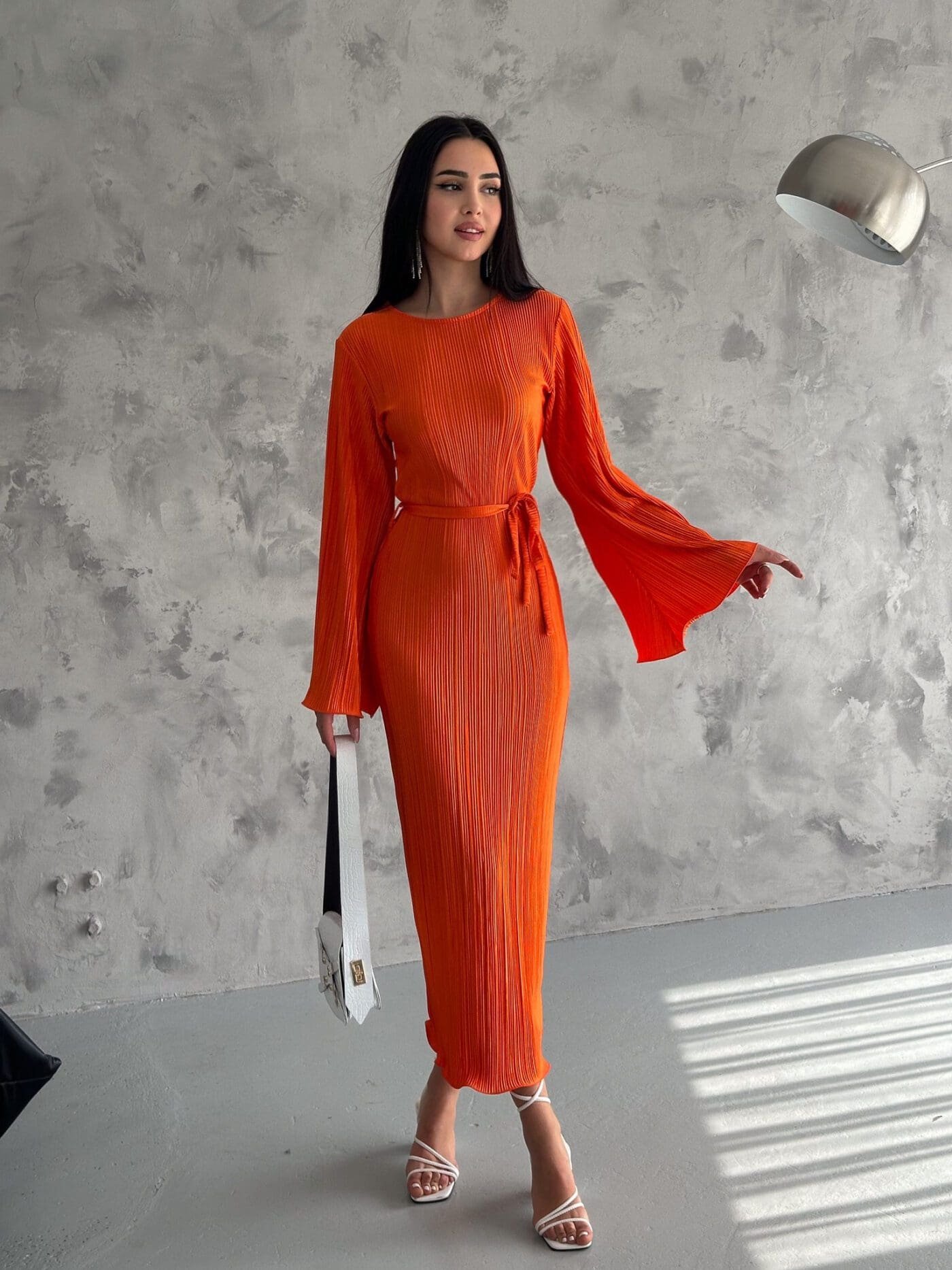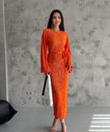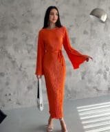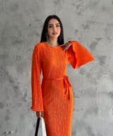 Pleated Midi Dress – Orange