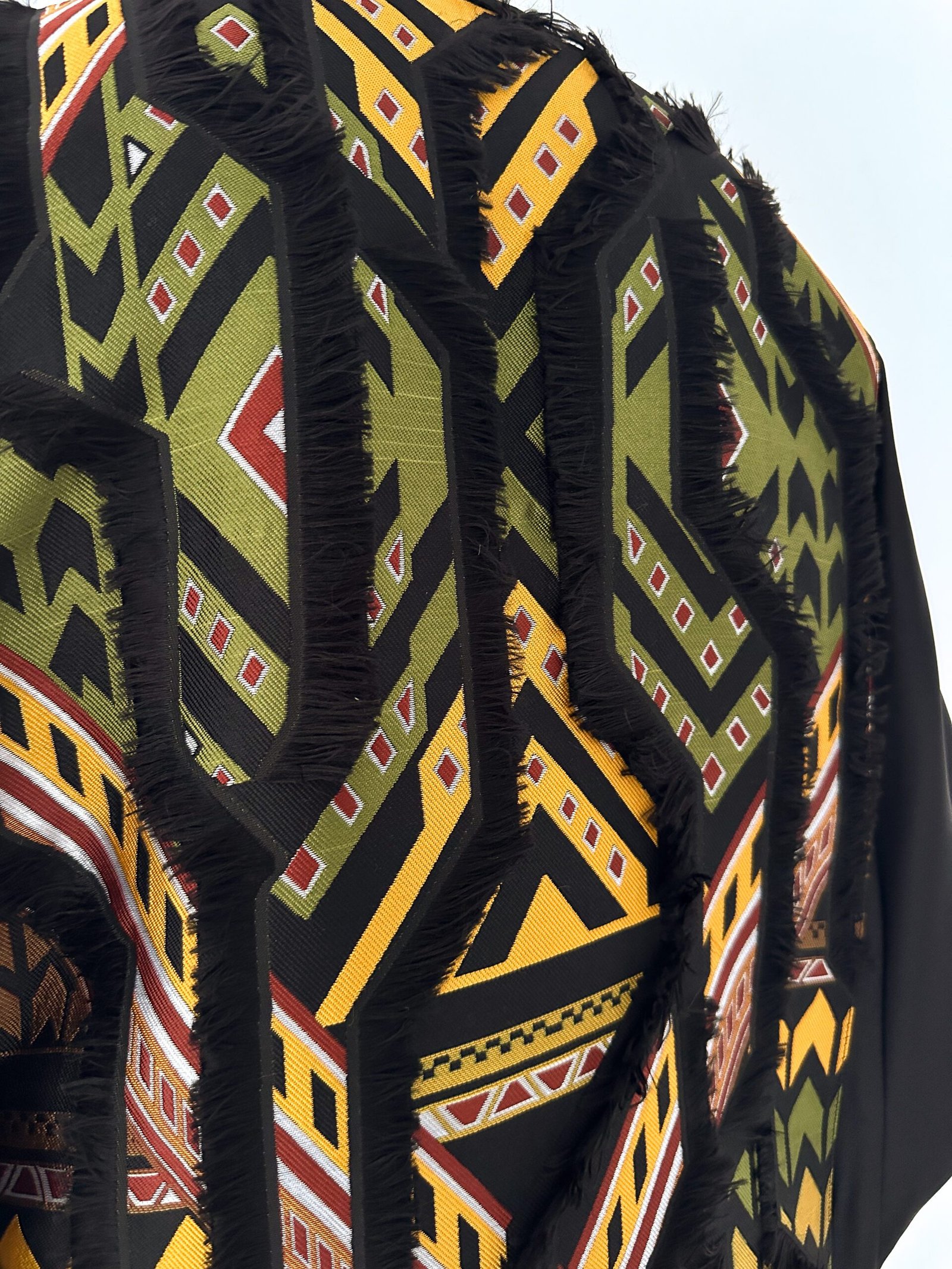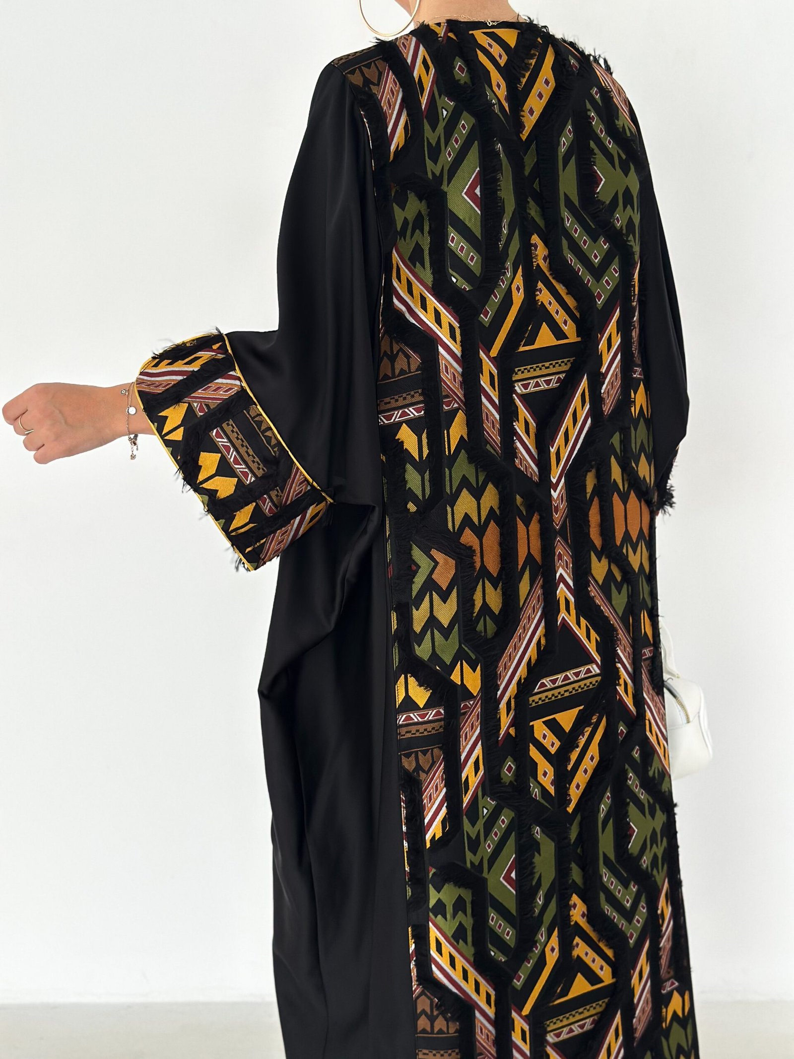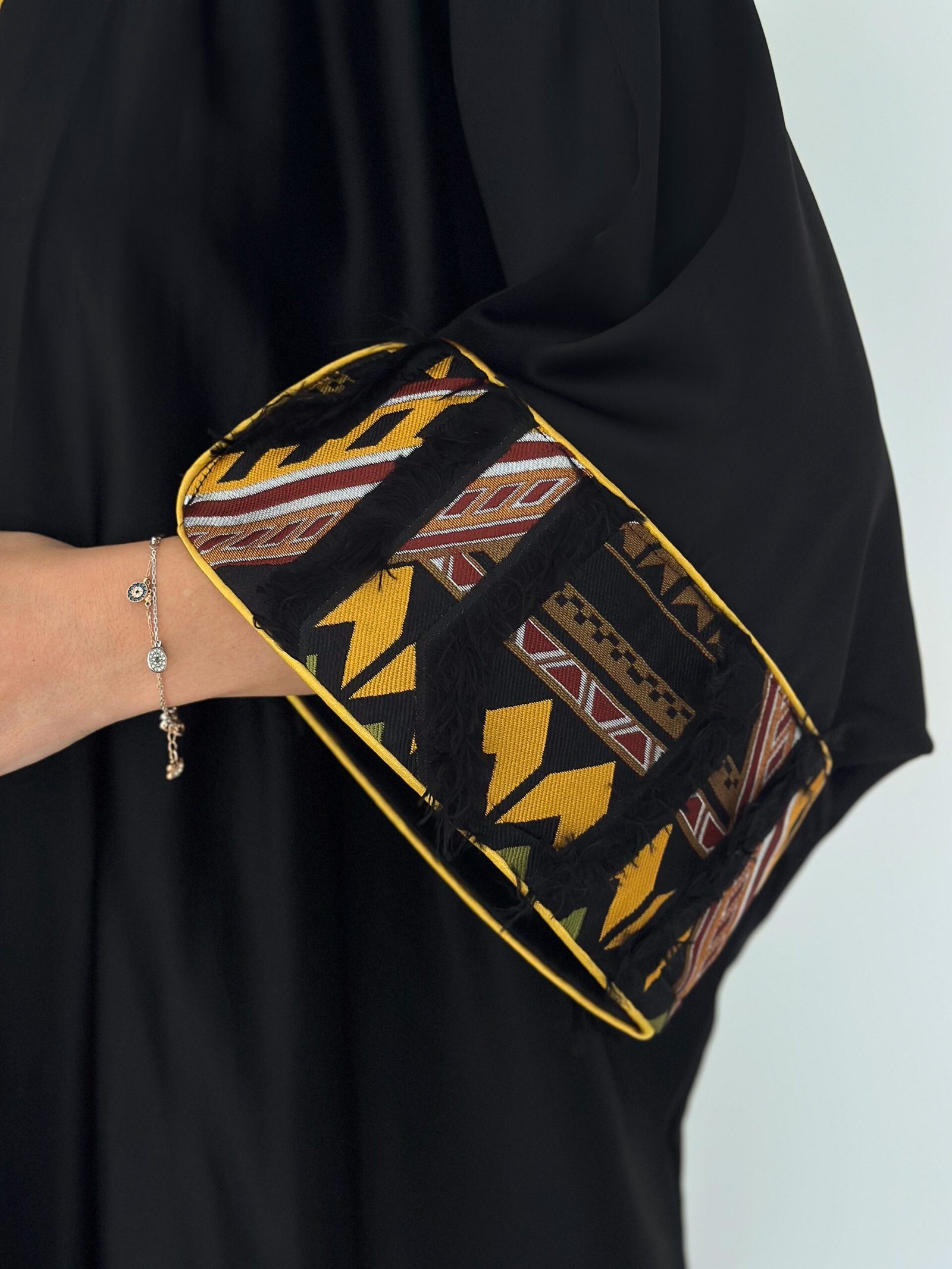 The inner sleeve detailing is inspired by geometric desert patterns, adding a bold yet elegant contrast.