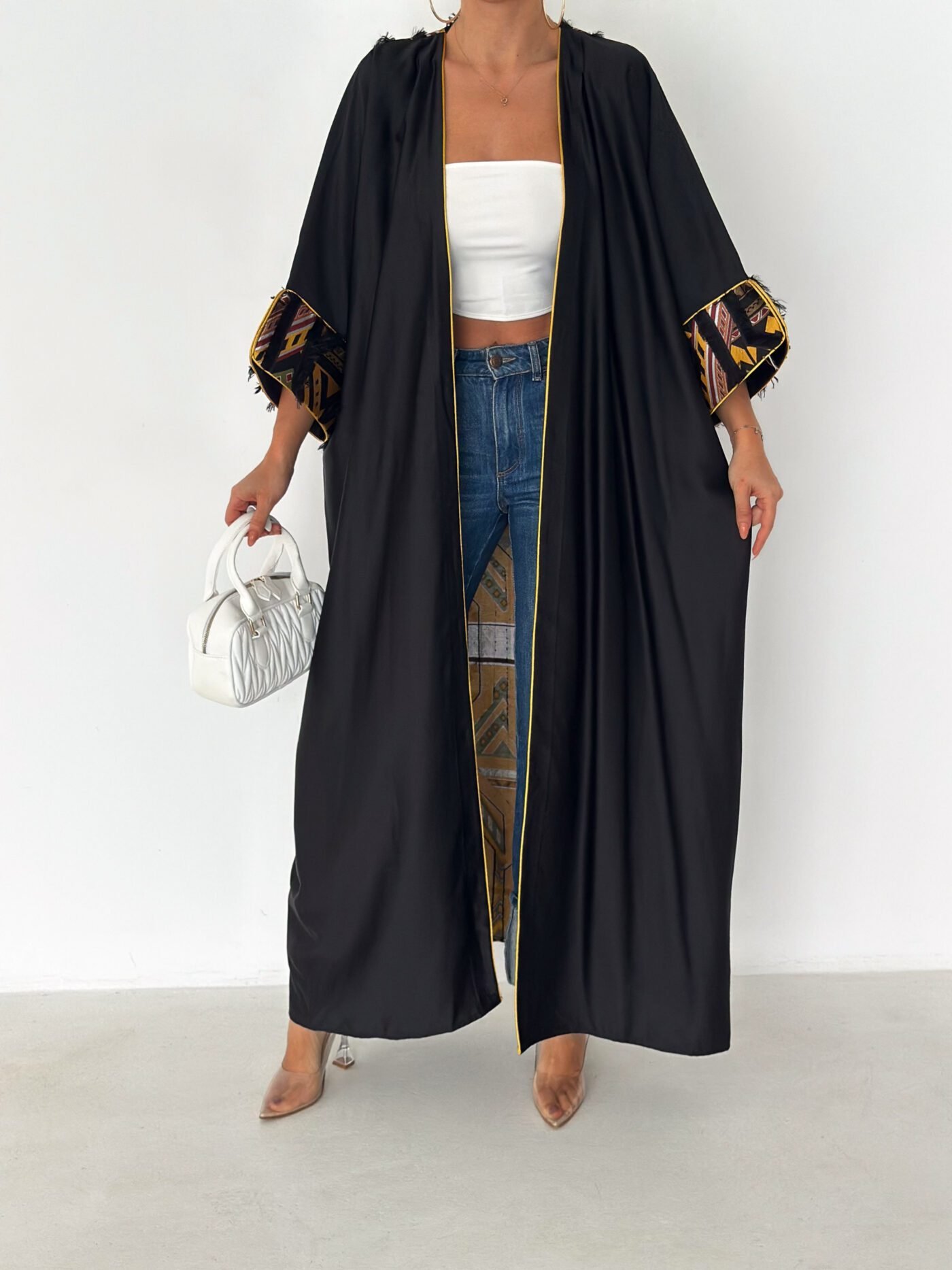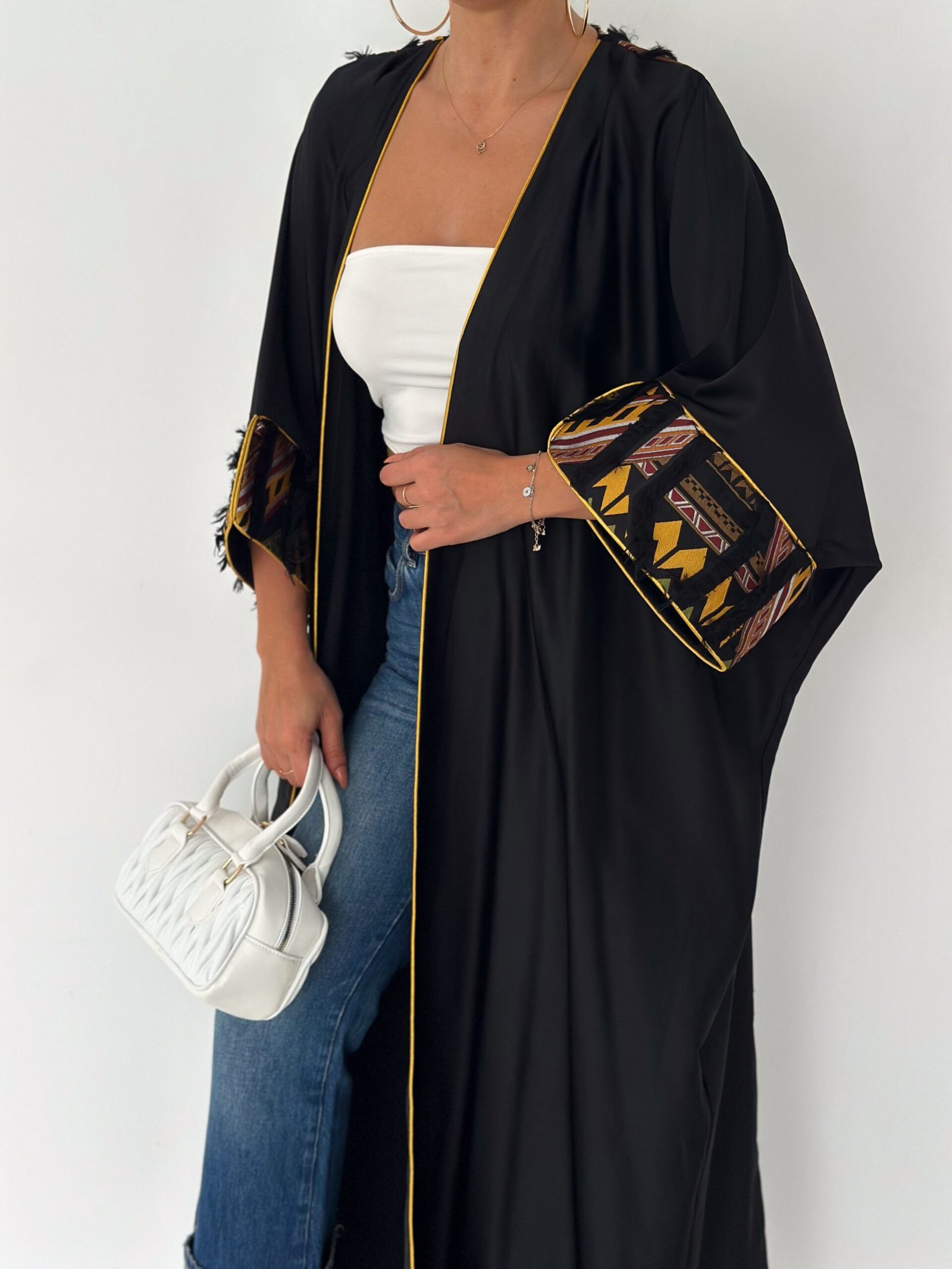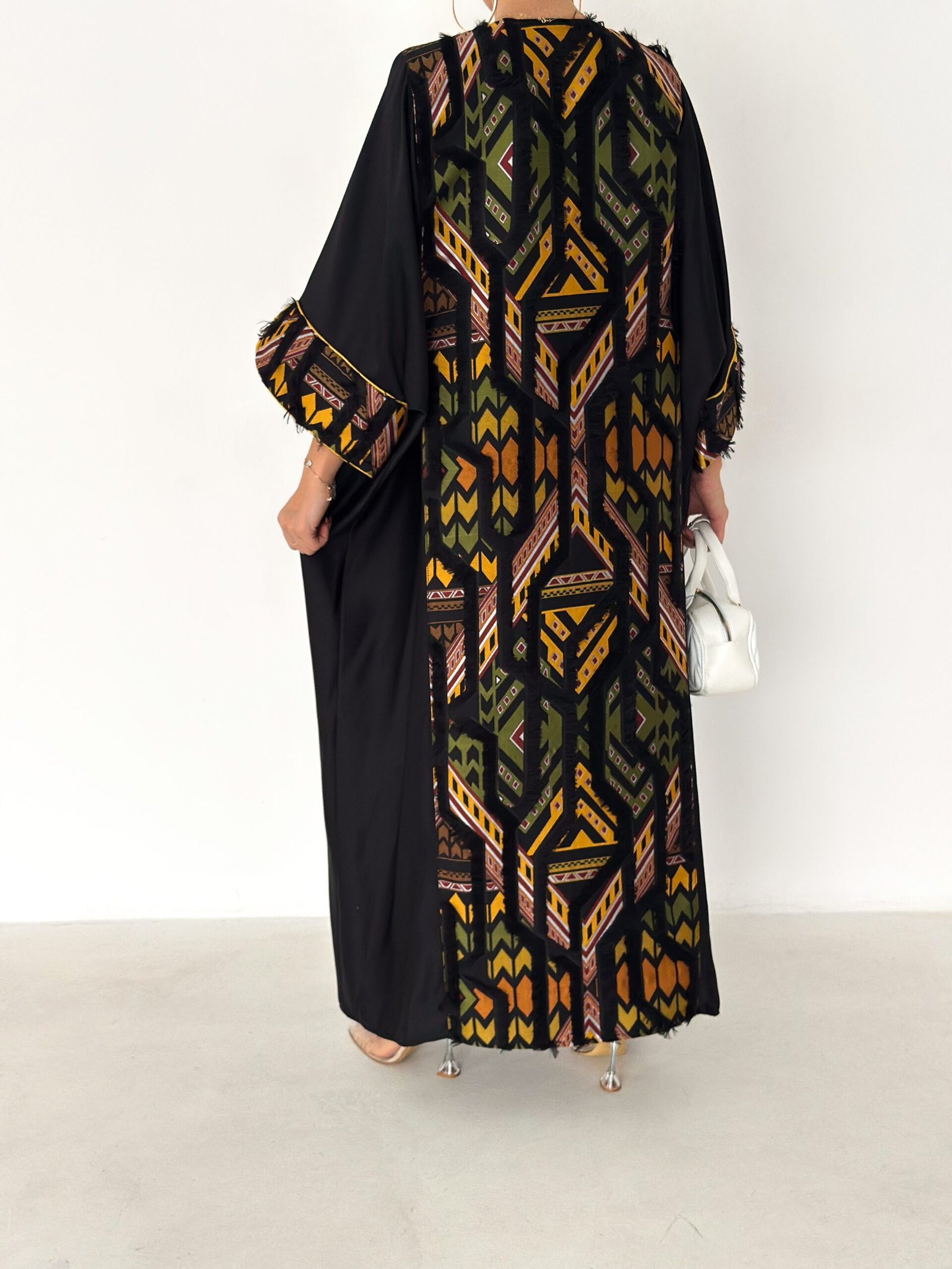 The inner sleeve detailing is inspired by geometric desert patterns, adding a bold yet elegant contrast.