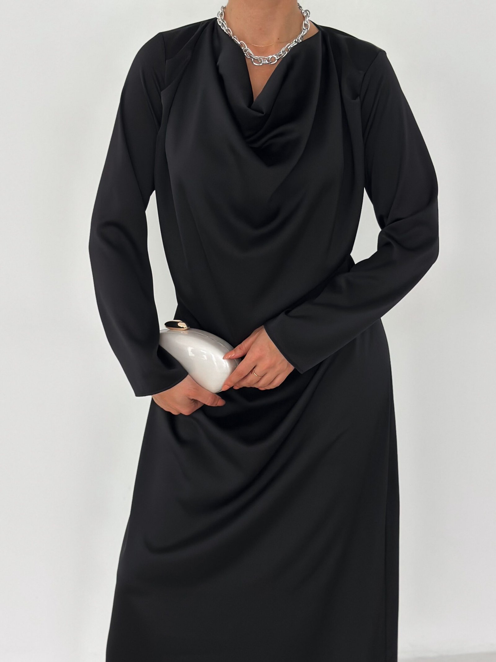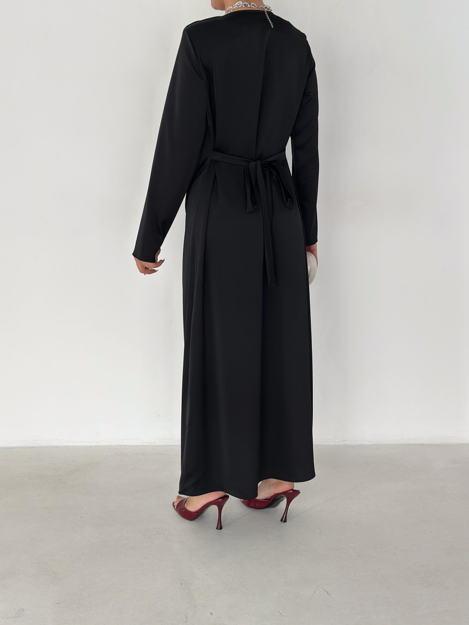 A sleek sleeveless inner dress designed to be the perfect base layer under abayas and sheer pieces. Crafted from smooth, lightweight fabric with an elegant draped neckline that adds a touch of sophistication without bulk. The straight silhouette ensures a clean, flattering fit while remaining comfortable for all-day wear.