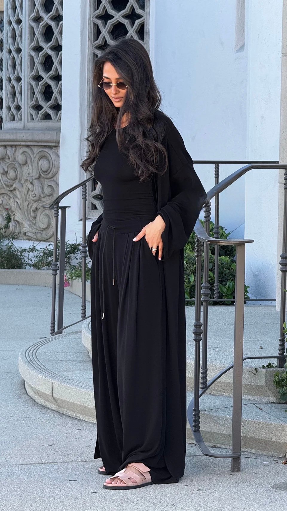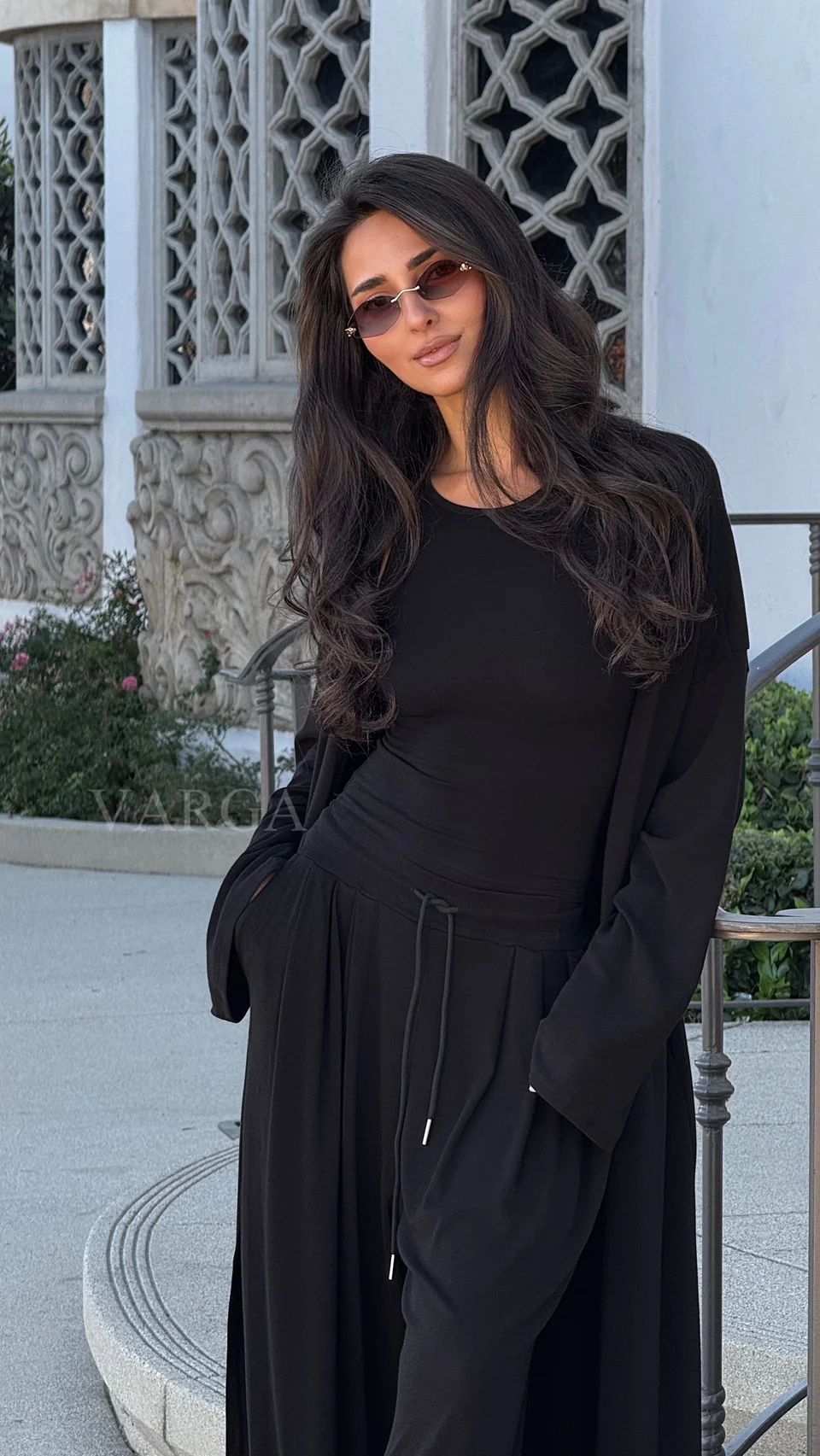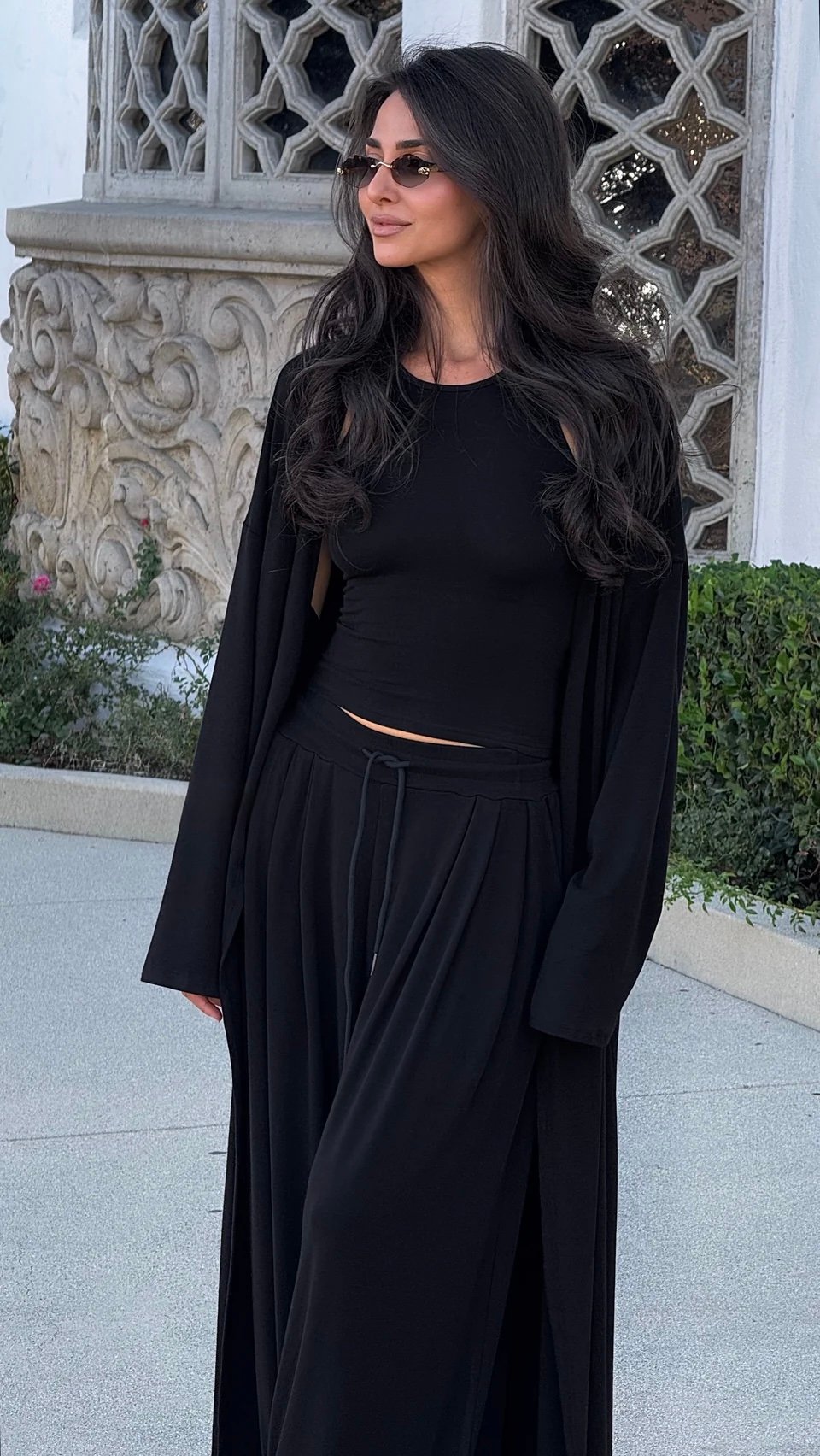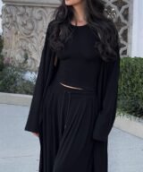 A three-piece elevated essential designed for women who love comfort with quiet luxury. Crafted from ultra-soft premium cotton with a natural, fluid drape that moves beautifully with the body. The Serenity Set brings together elegance, comfort, and effortless style—perfect for mornings, travel days, or a refined everyday look.