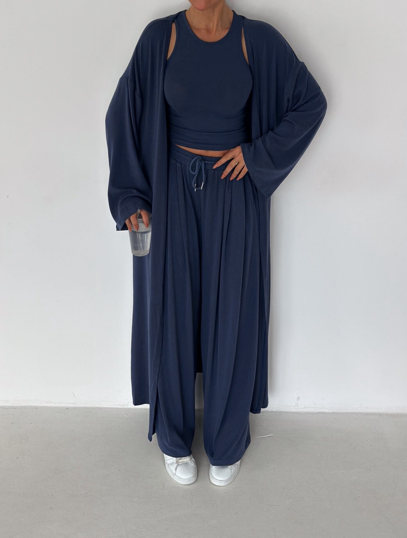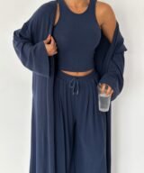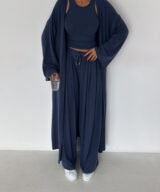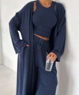 A three-piece elevated essential designed for women who love comfort with quiet luxury. Crafted from ultra-soft premium cotton with a natural, fluid drape that moves beautifully with the body. The Serenity Set brings together elegance, comfort, and effortless style—perfect for mornings, travel days, or a refined everyday look.