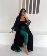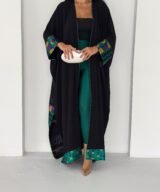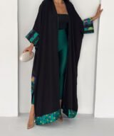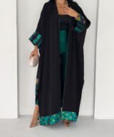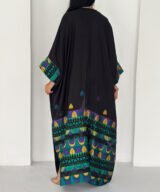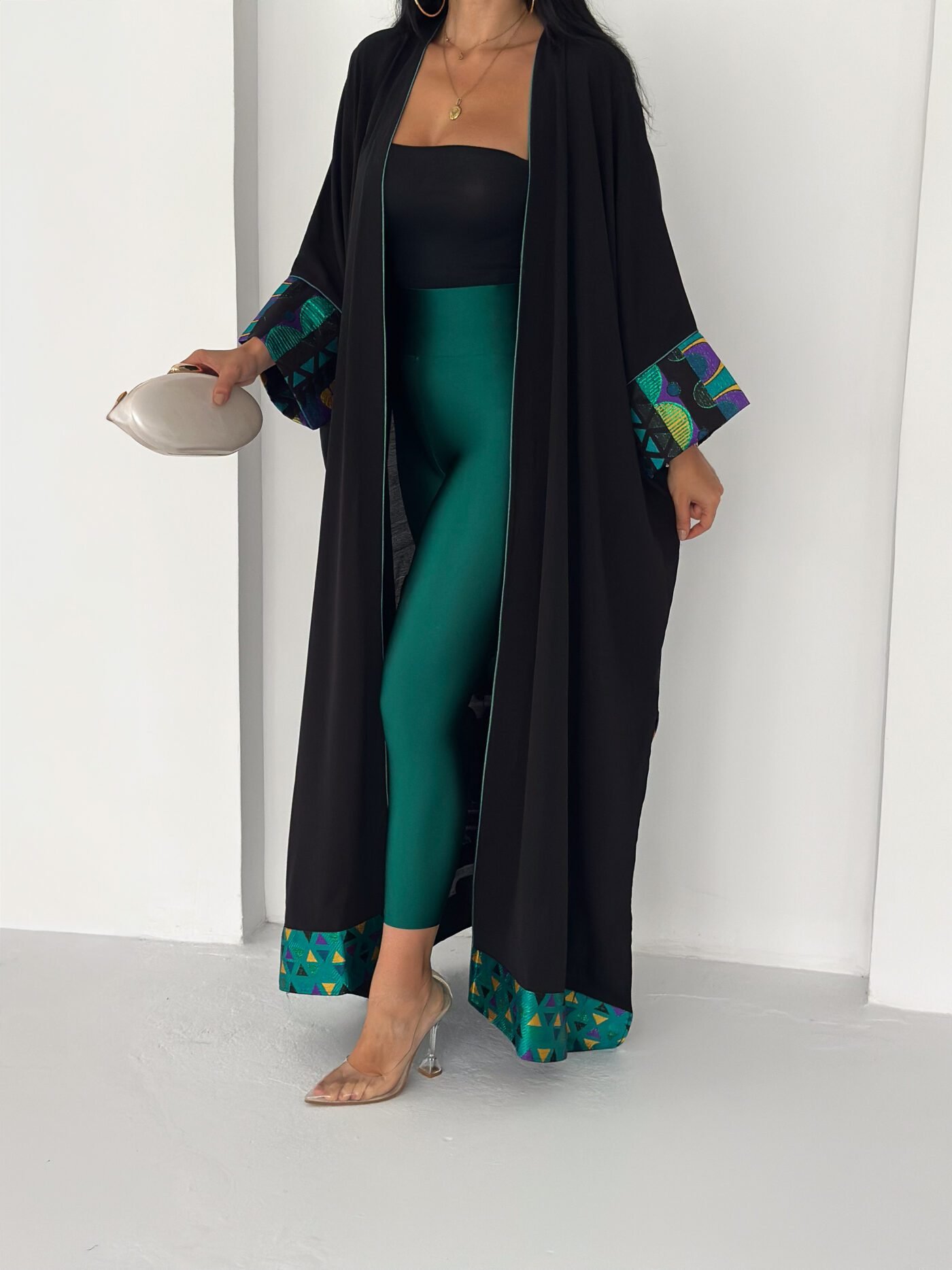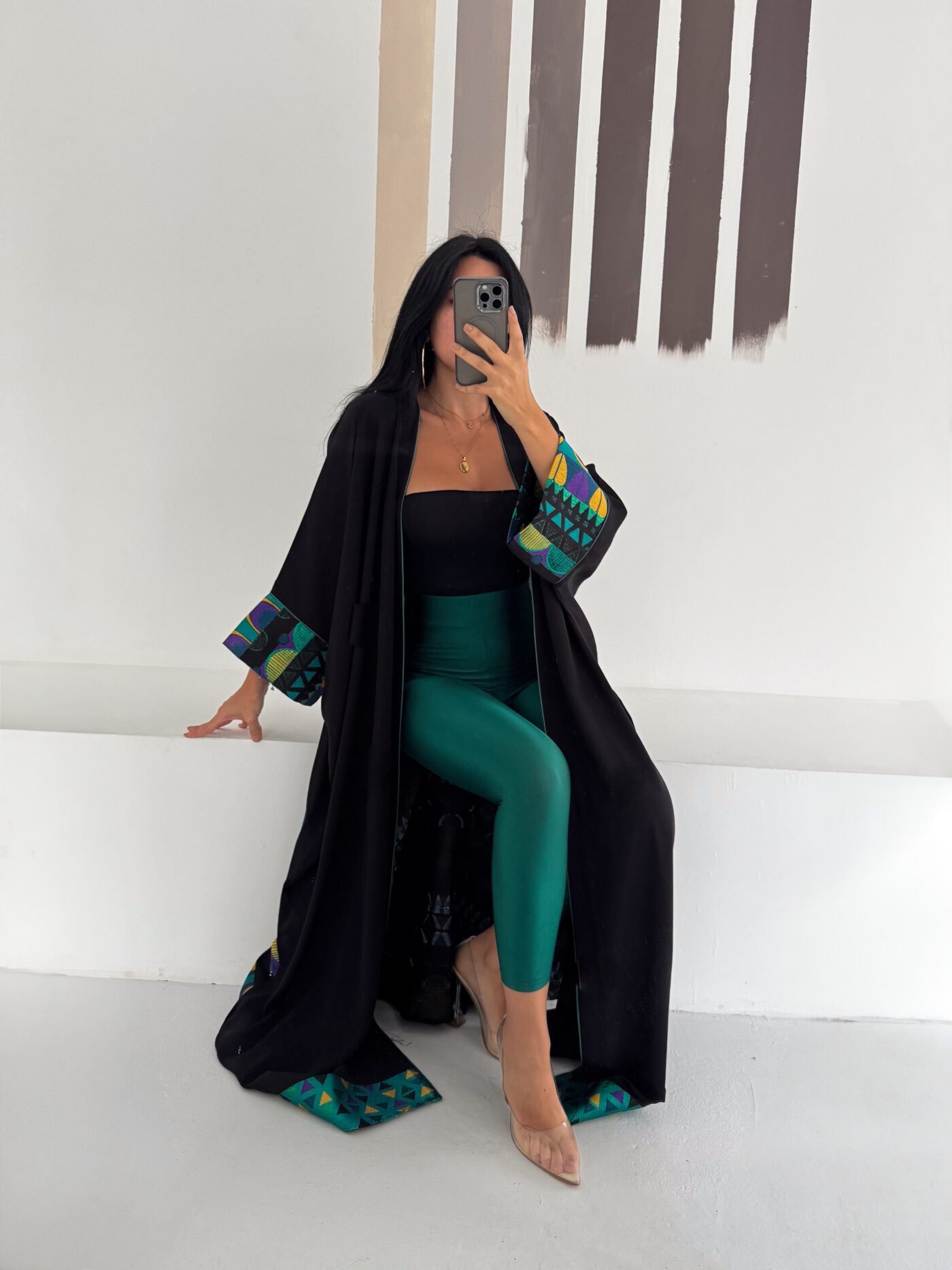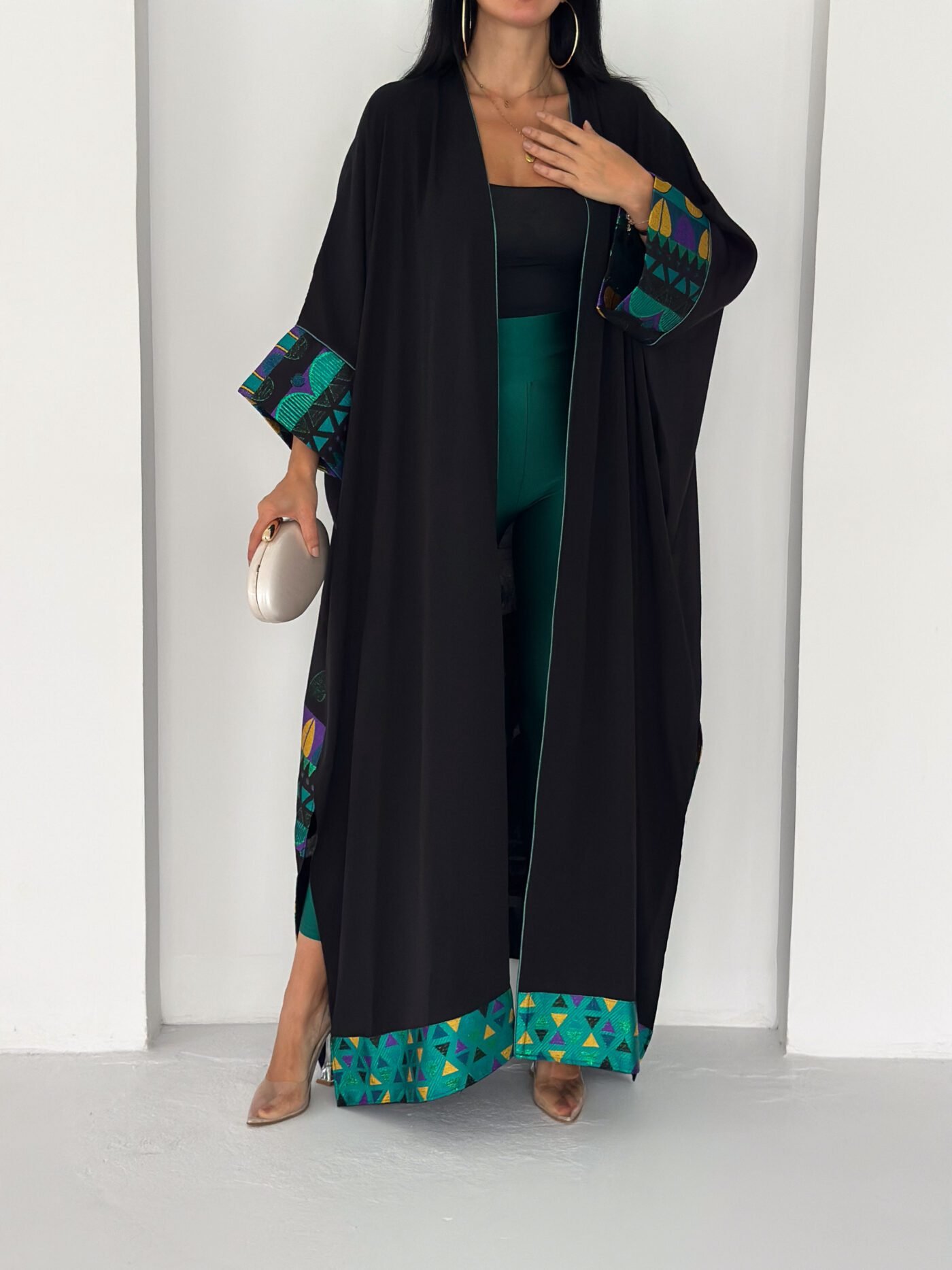 A statement black abaya designed with a flowing, oversized silhouette for effortless elegance.
